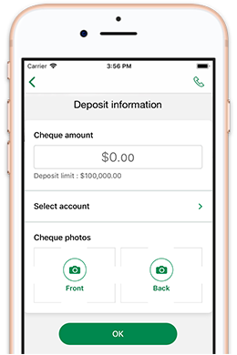 Deposit a cheque just by taking pictures of the front and back.