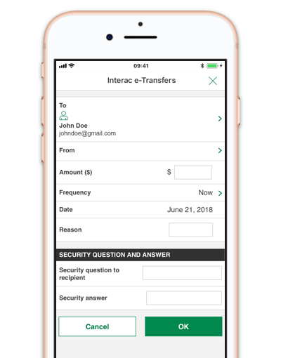 • Scheduled Interac e-Transfers are processed at 6:30 AM, 7 days a week.