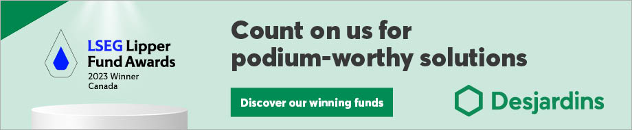 The Desjardins Funds are not guaranteed, their value fluctuates frequently and their past performance is not indicative of their future returns. The indicated rates of return are the historical annual compounded total returns as indicated the date of the present document including changes in securities value and reinvestment of all distributions and do not take into account sales, redemption, distribution or optional charges or income taxes payable by any securityholder that would have reduced returns. Commissions, trailing commissions, management fees and expenses all may be associated with mutual fund investments. Please read the prospectus before investing. The Desjardins Funds are offered by such registered dealers as the Desjardins Financial Services Firm, a mutual fund dealer belonging to the Desjardins Group that distributes the Funds in caisses throughout Québec and Ontario.