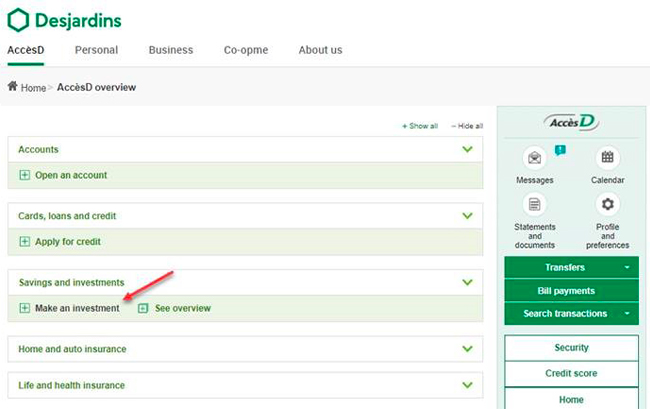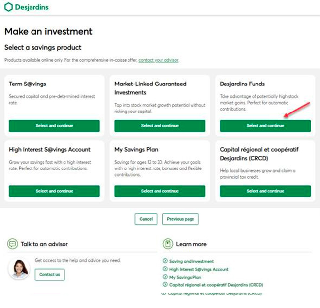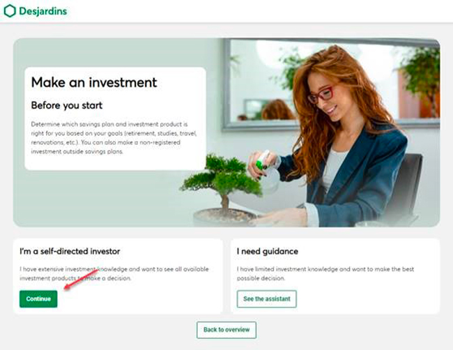 2b. If you do not own this product: On the overview page, click "Make an investment" (for Melodia and SocieTerra Portfolios only), then click "Continue" under "I'm a self-directed investor"
