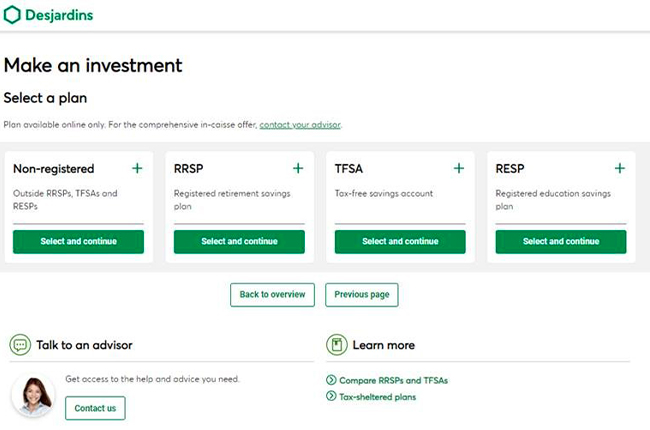 3. Select the plan (RRSP, TFSA or Non-registered)