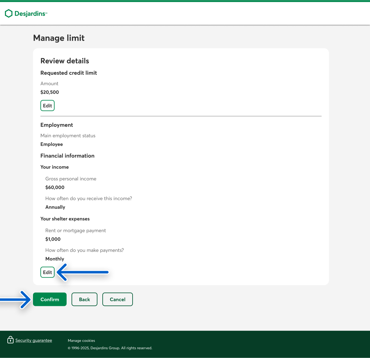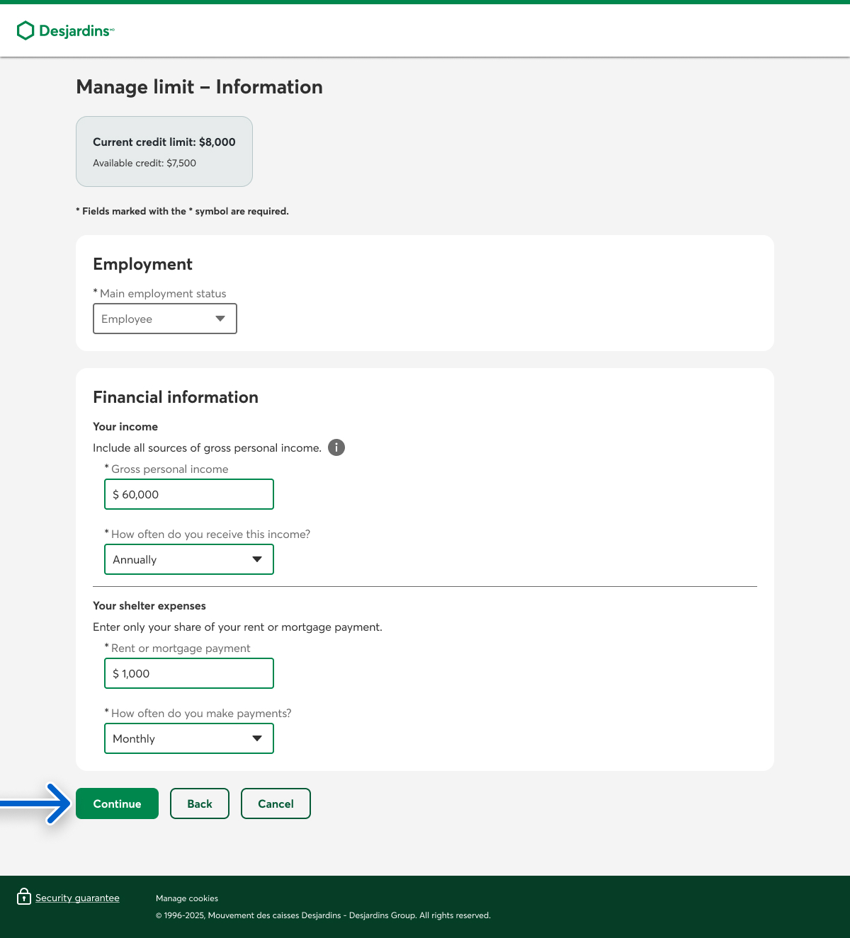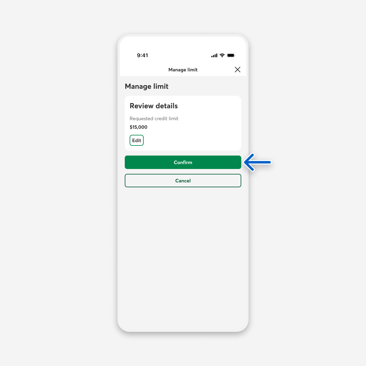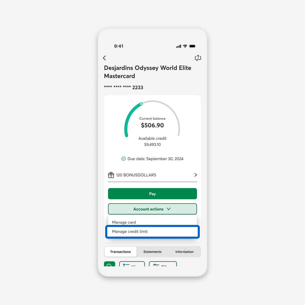 Learn how to manage your credit card’s credit limit using our mobile and online services if you’re the sole cardholder. If you’re a joint cardholder, call us to make your request.