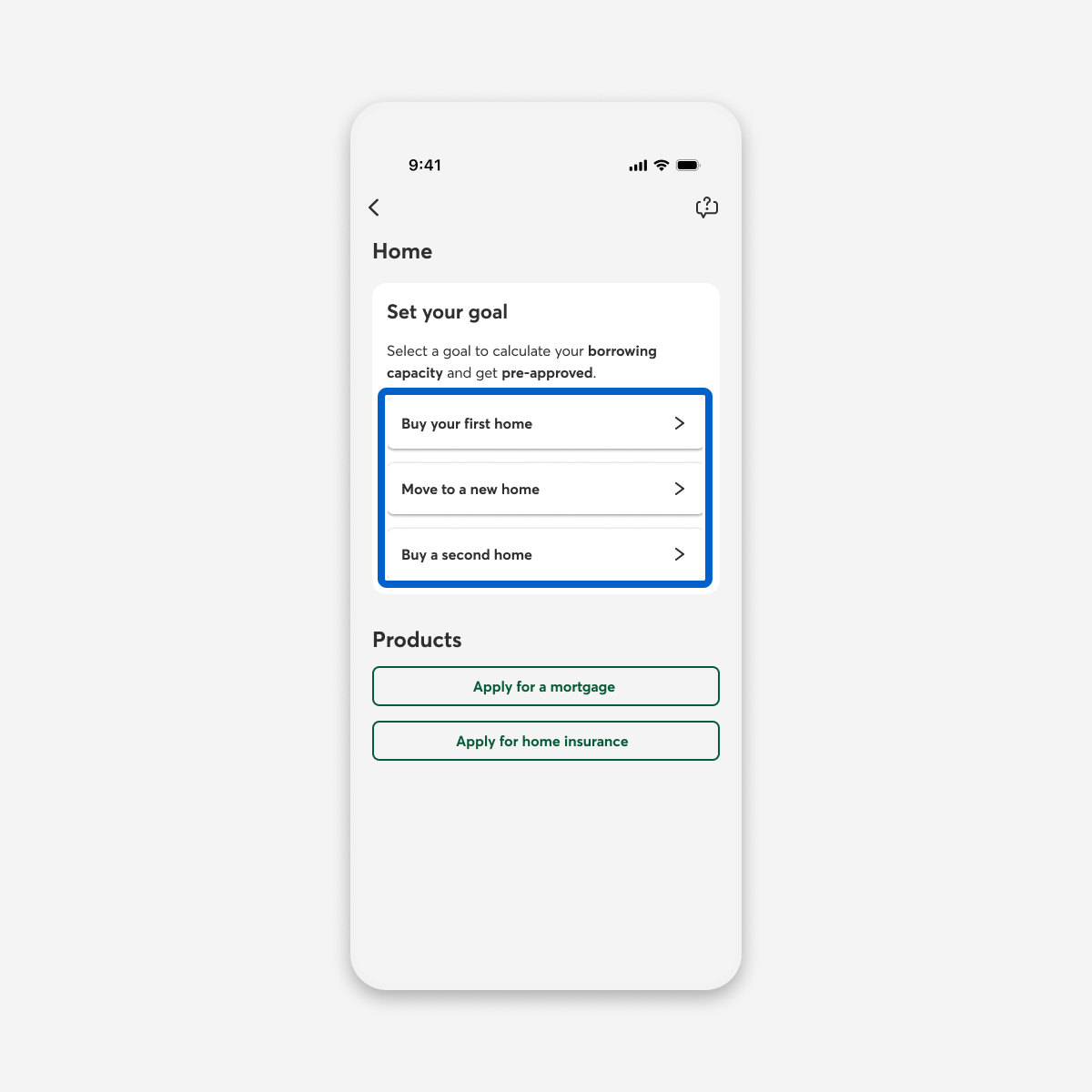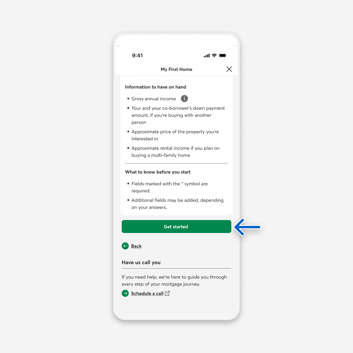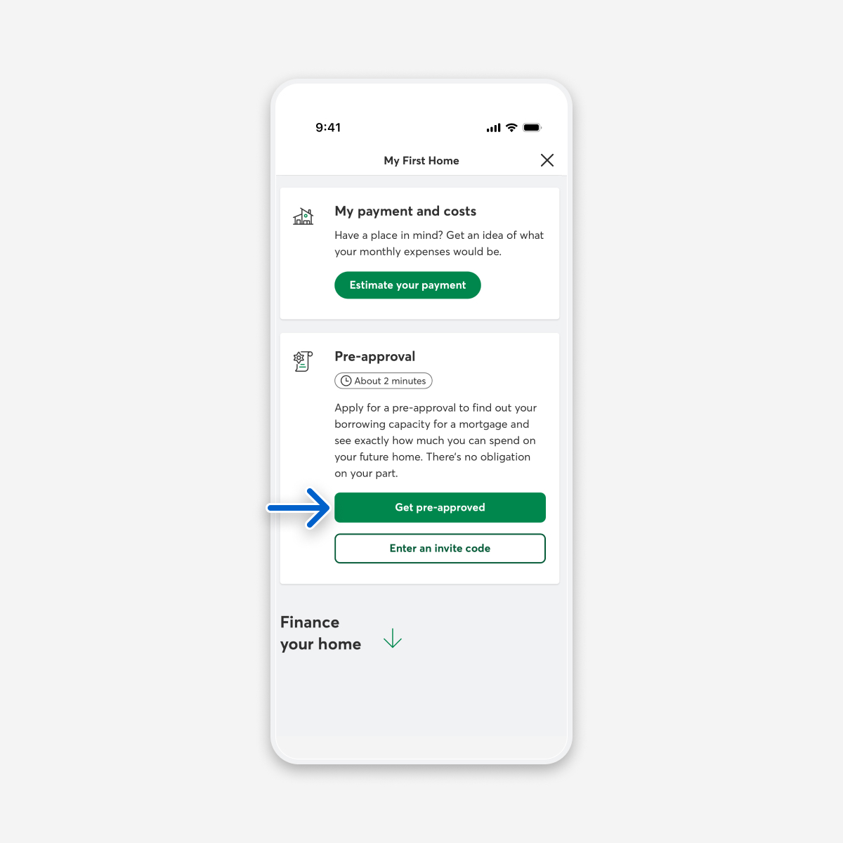 On the page of the goal you chose, under Pre-approval, select the Get pre-approved button.