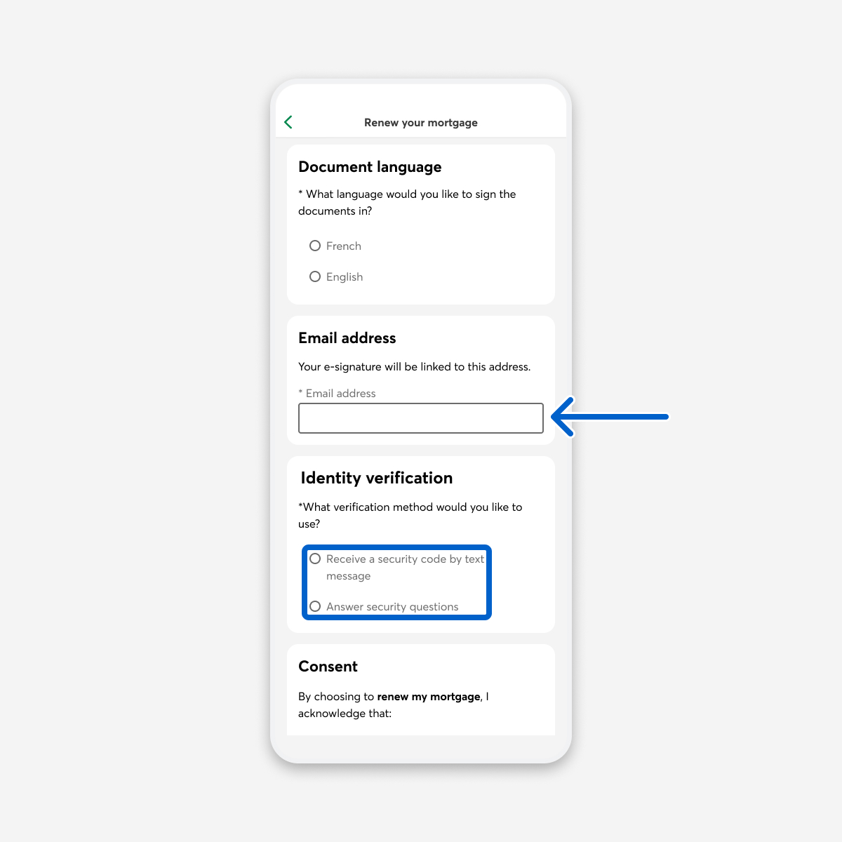Enter the email address you want us to send the contract to. If you need to confirm your identity, the Identity verification section appears. Choose a verification method and enter the required information.