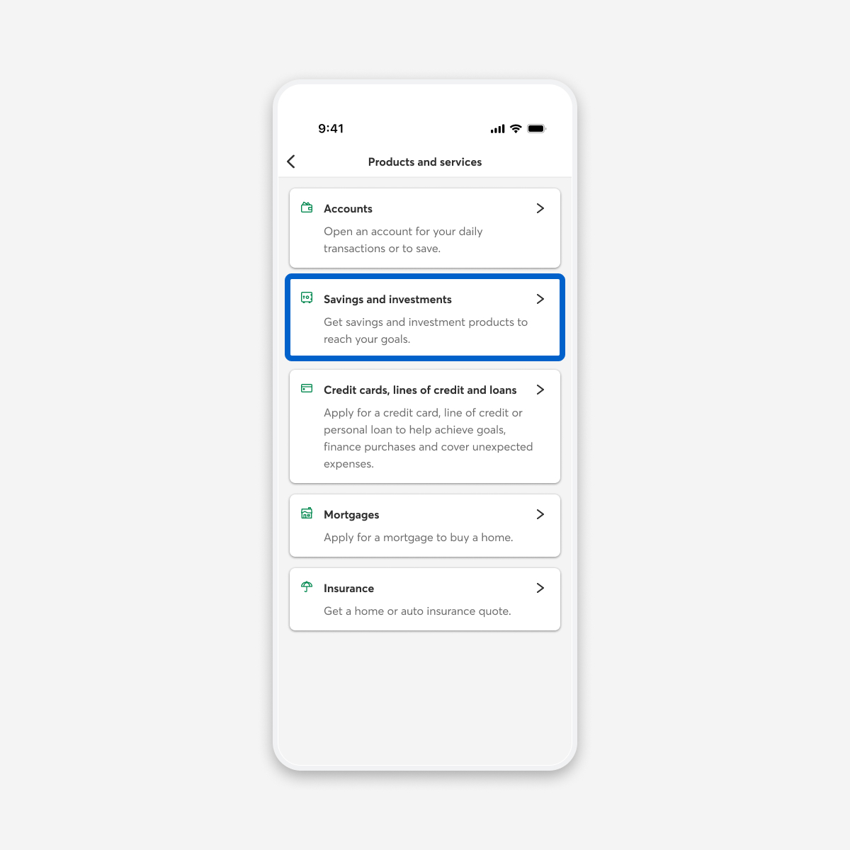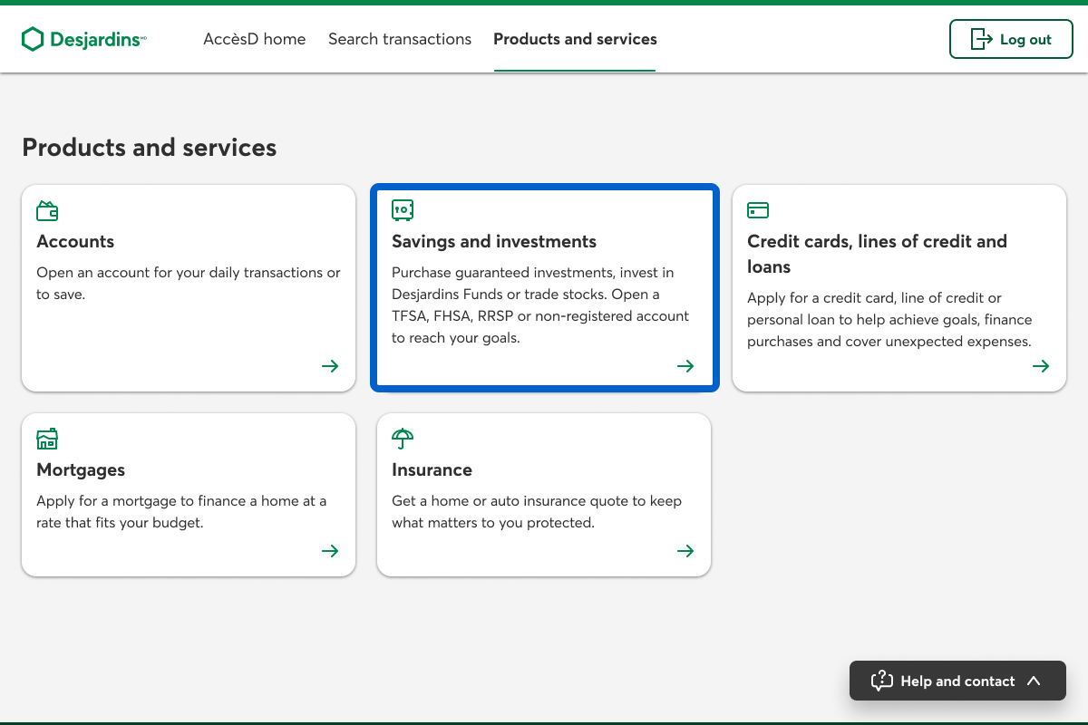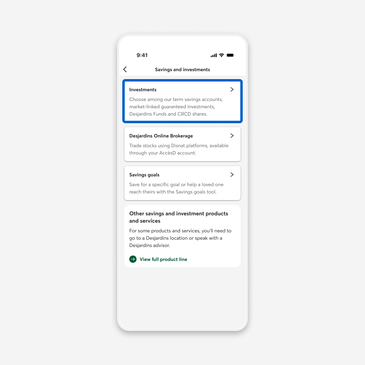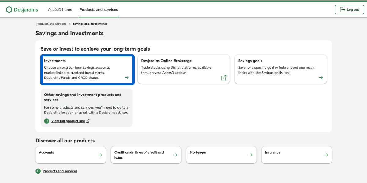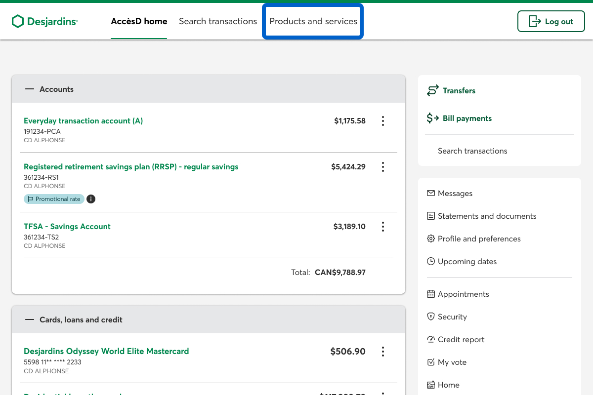Log in to the Desjardins mobile services app, then select the Products tab.