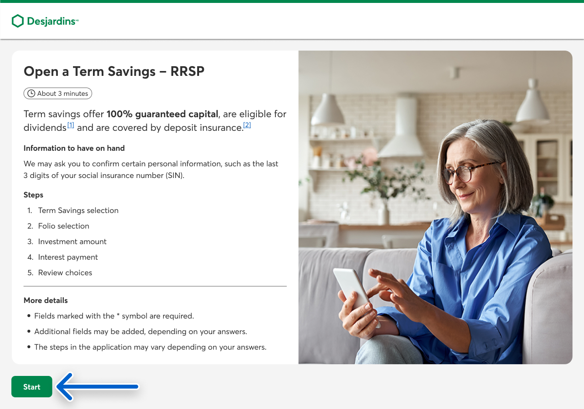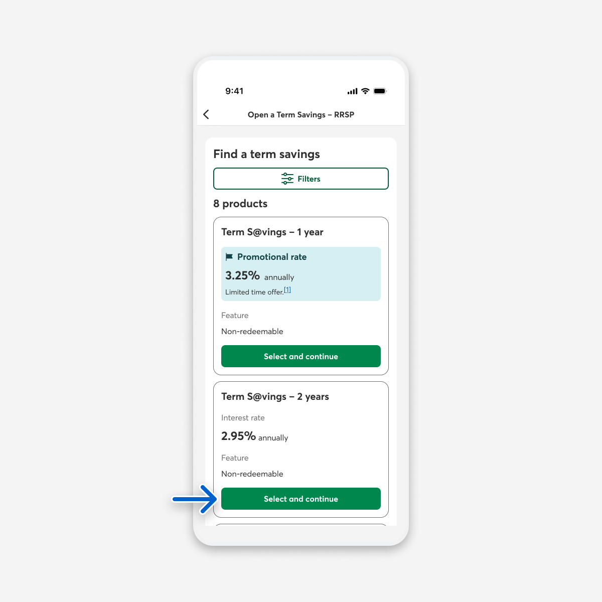 Under Choose a savings product, choose the Select and continue button for Term Savings.