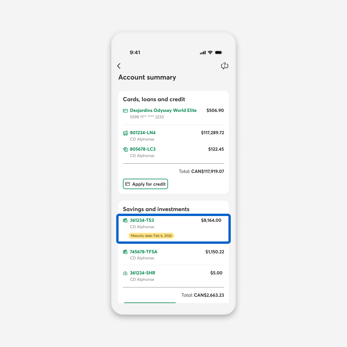 Log in to the Desjardins mobile services app.