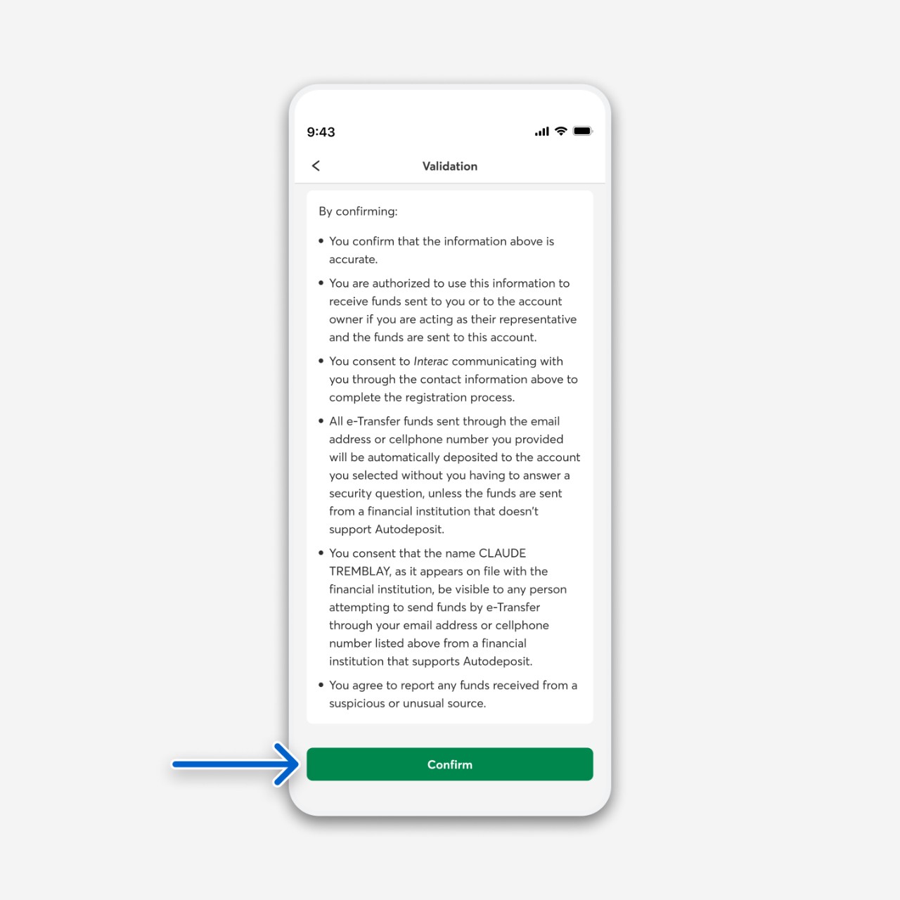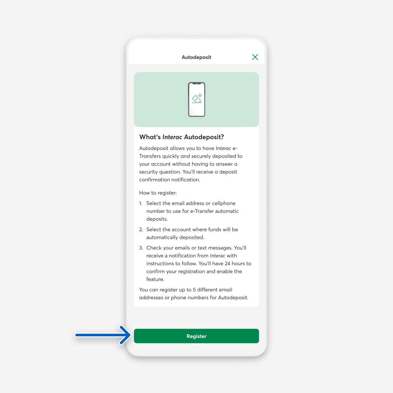 Keep an eye on your email and text messages. You'll receive a notification from Interac within 24 hours to complete your registration.