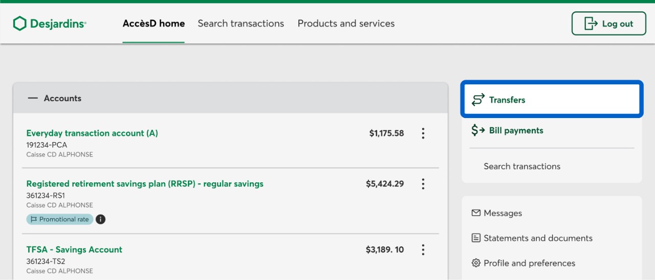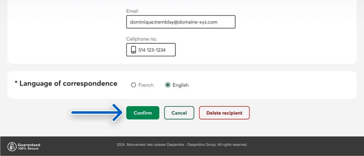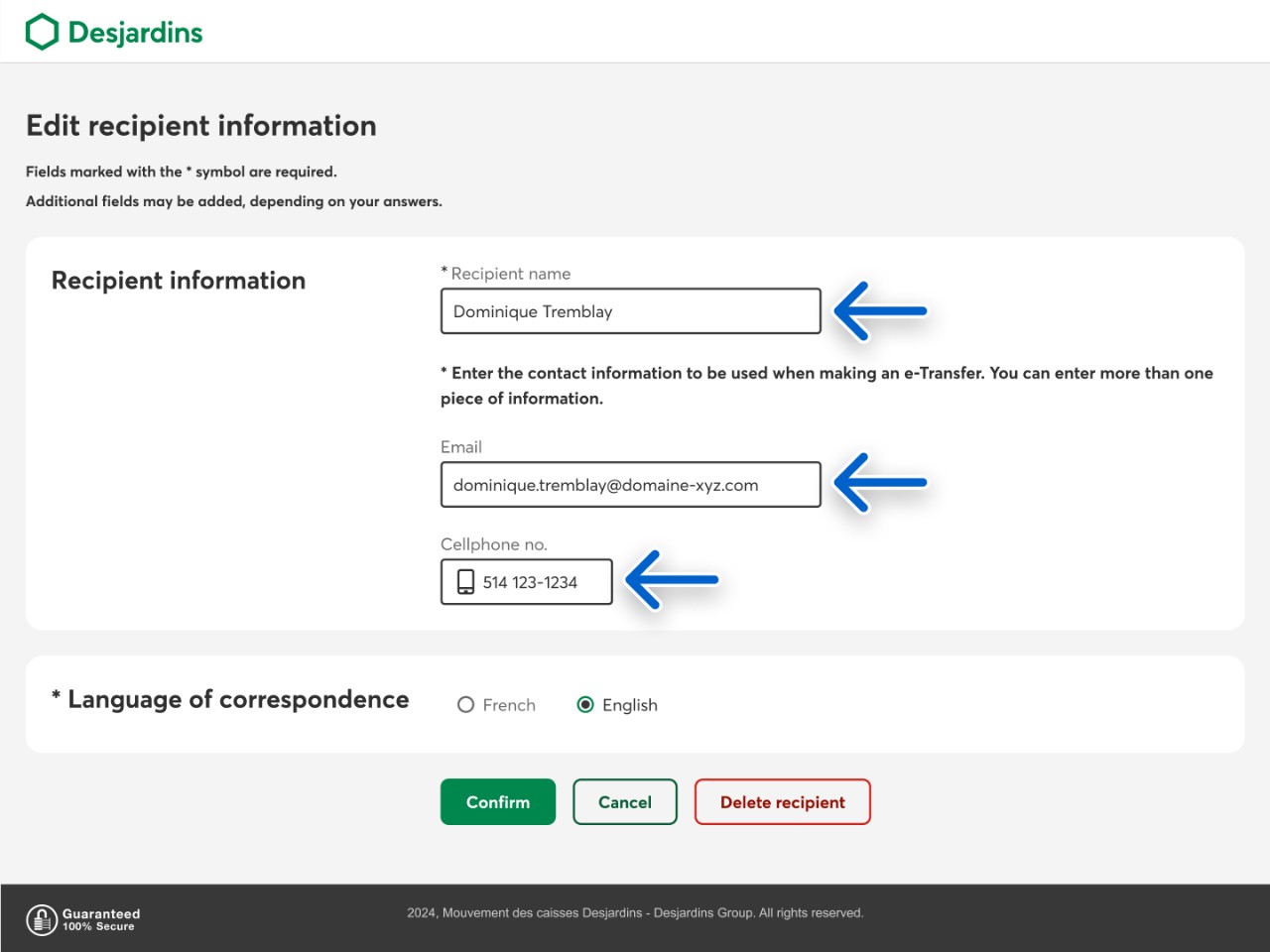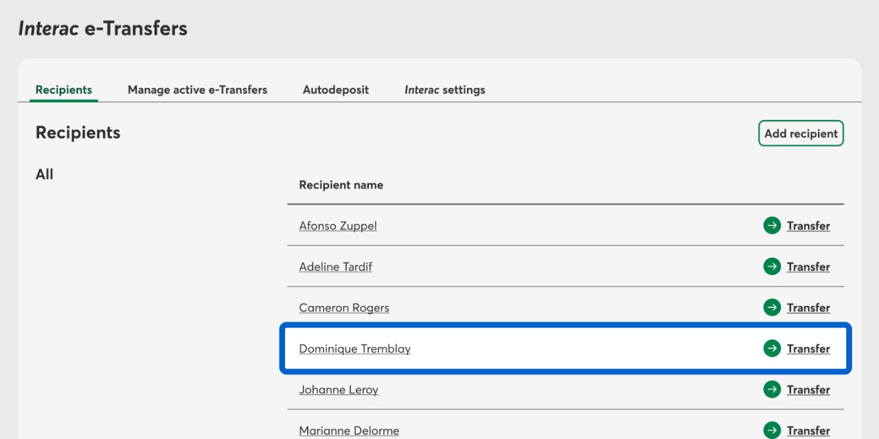 Edit the contact information of your Interac e-Transfer® recipients on AccèsD from a mobile device or computer.