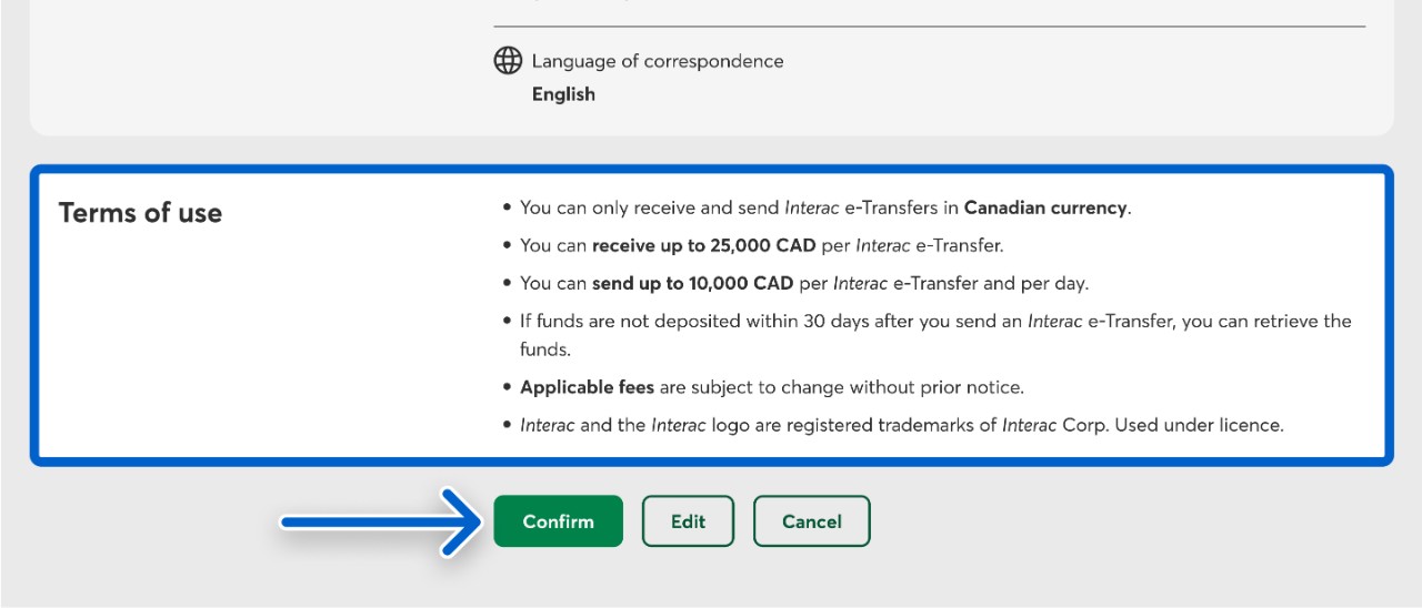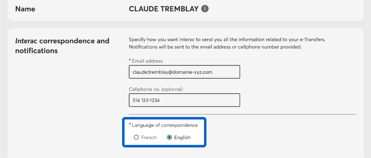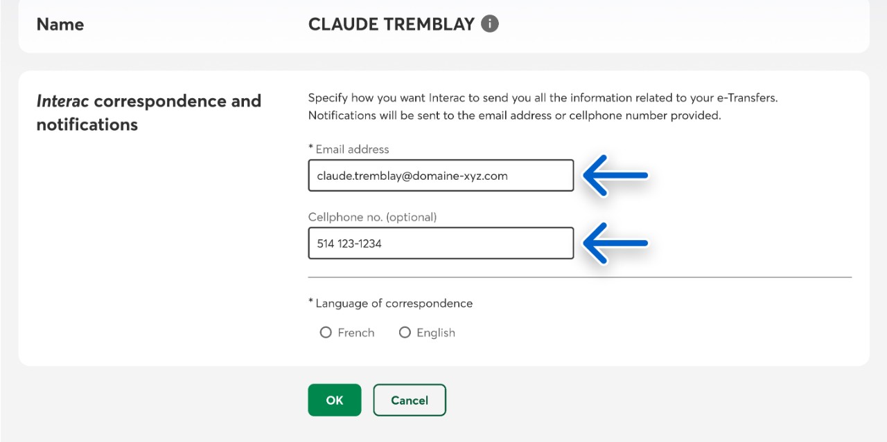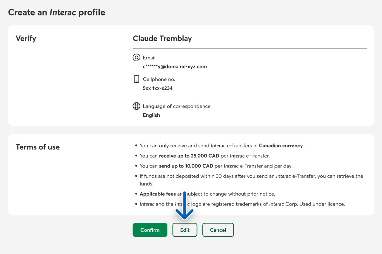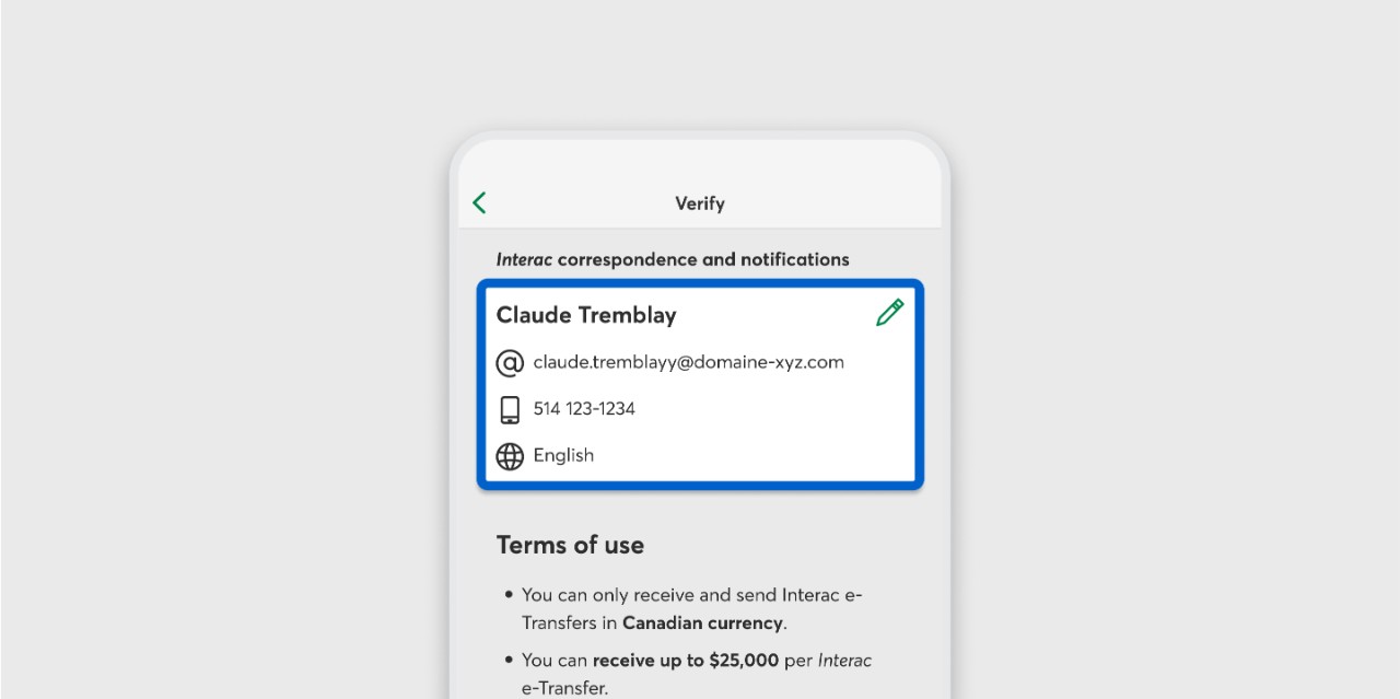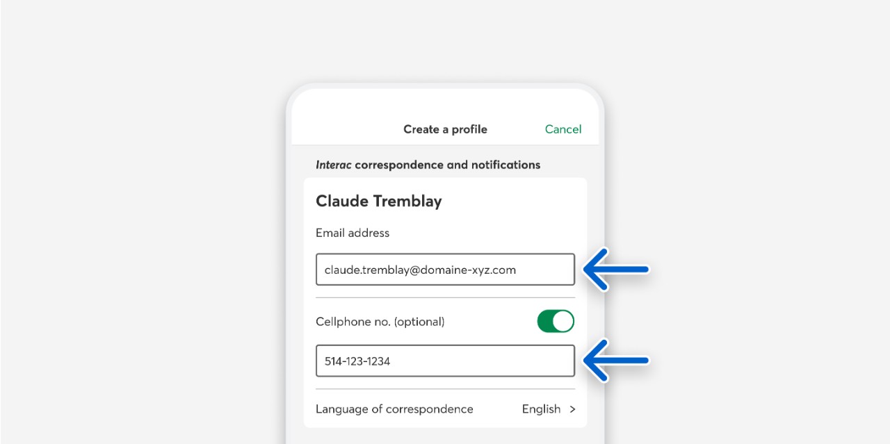 Enter the email address or cellphone number you want to use to receive Interac e-Transfers.