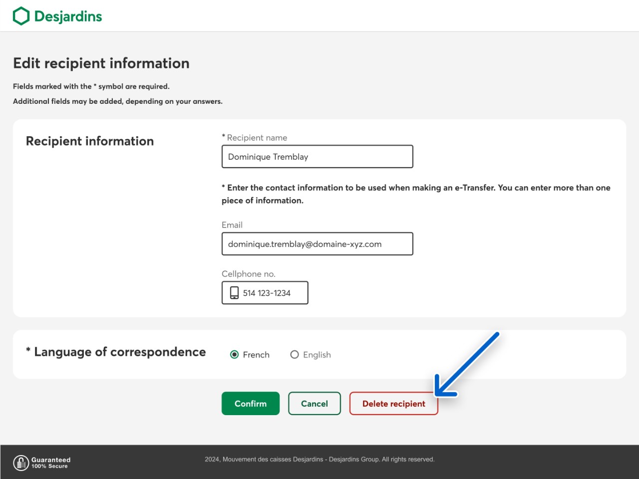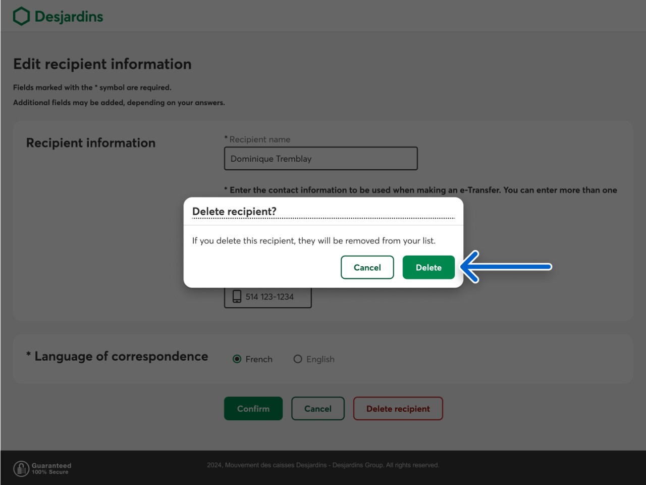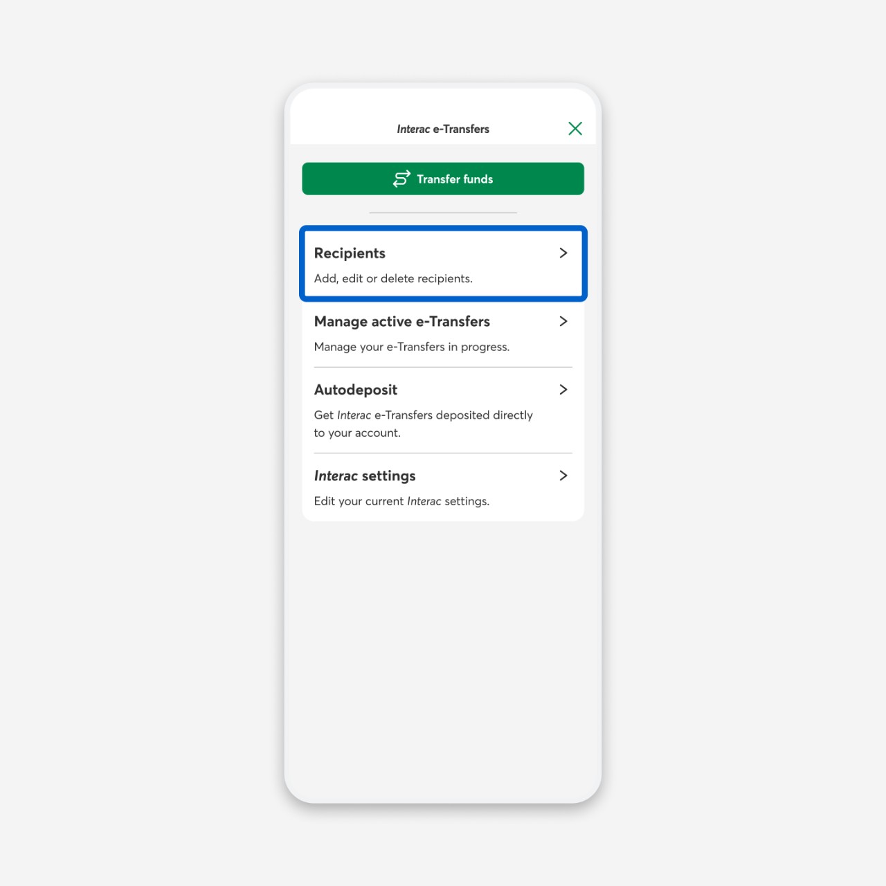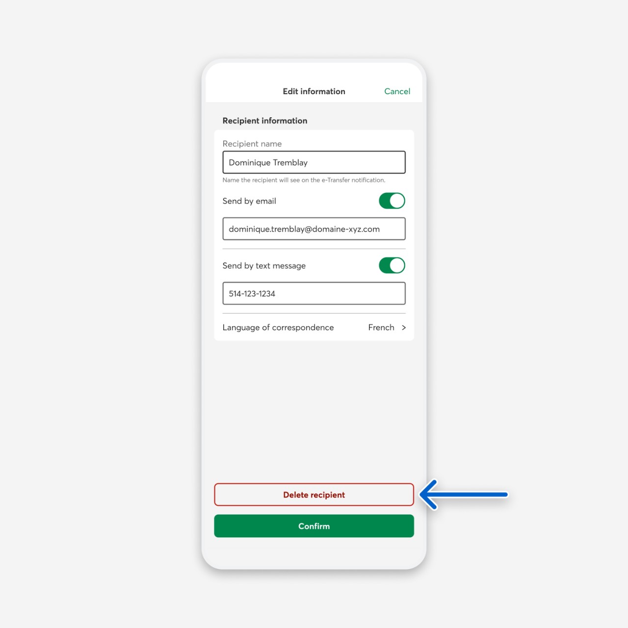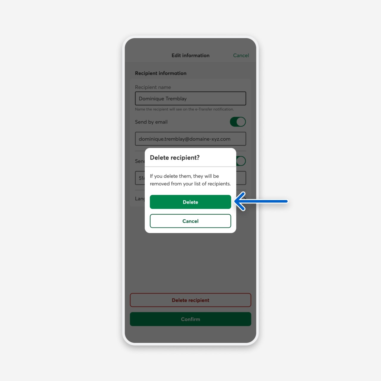Delete Interac e-Transfer® recipients on AccèsD from a mobile device or computer.