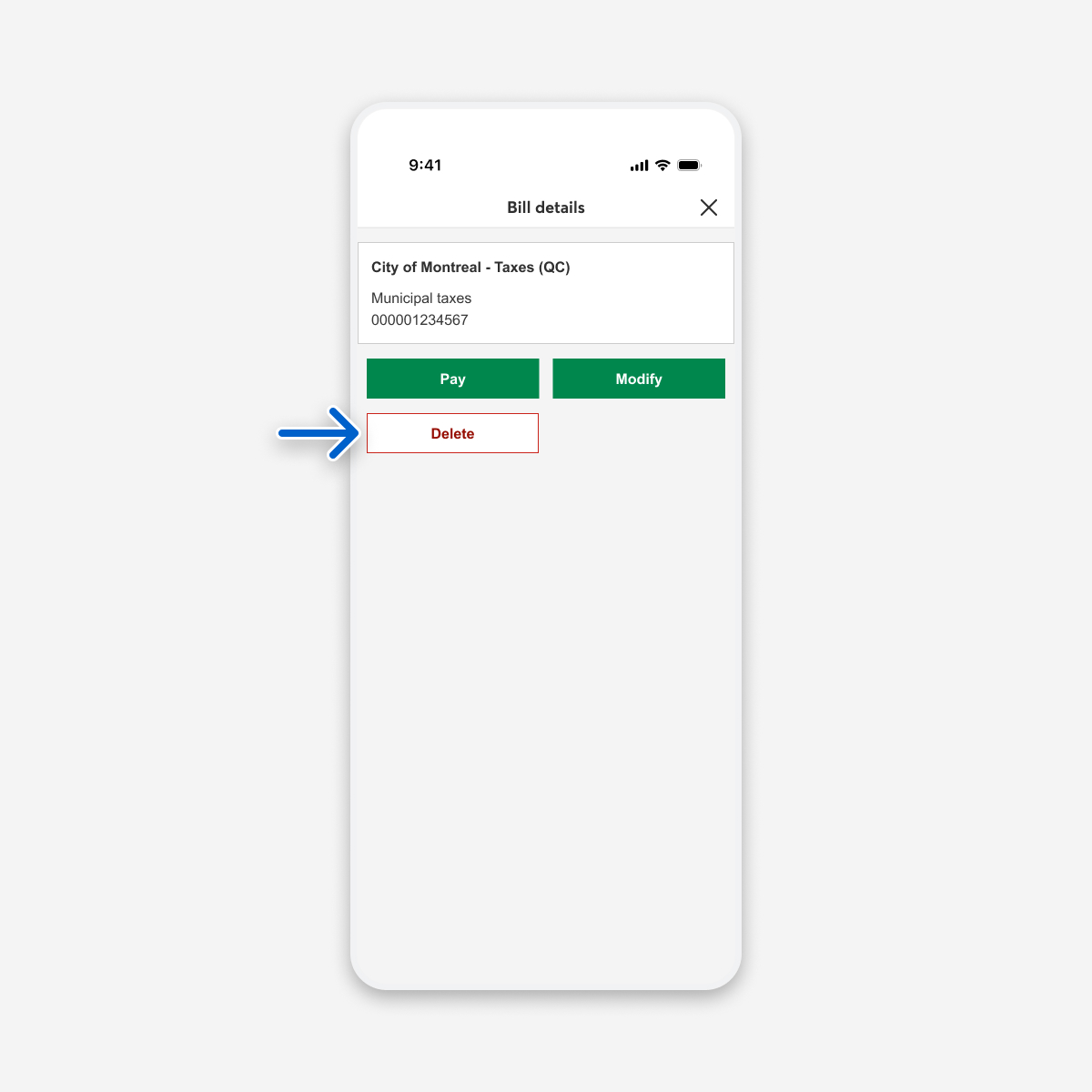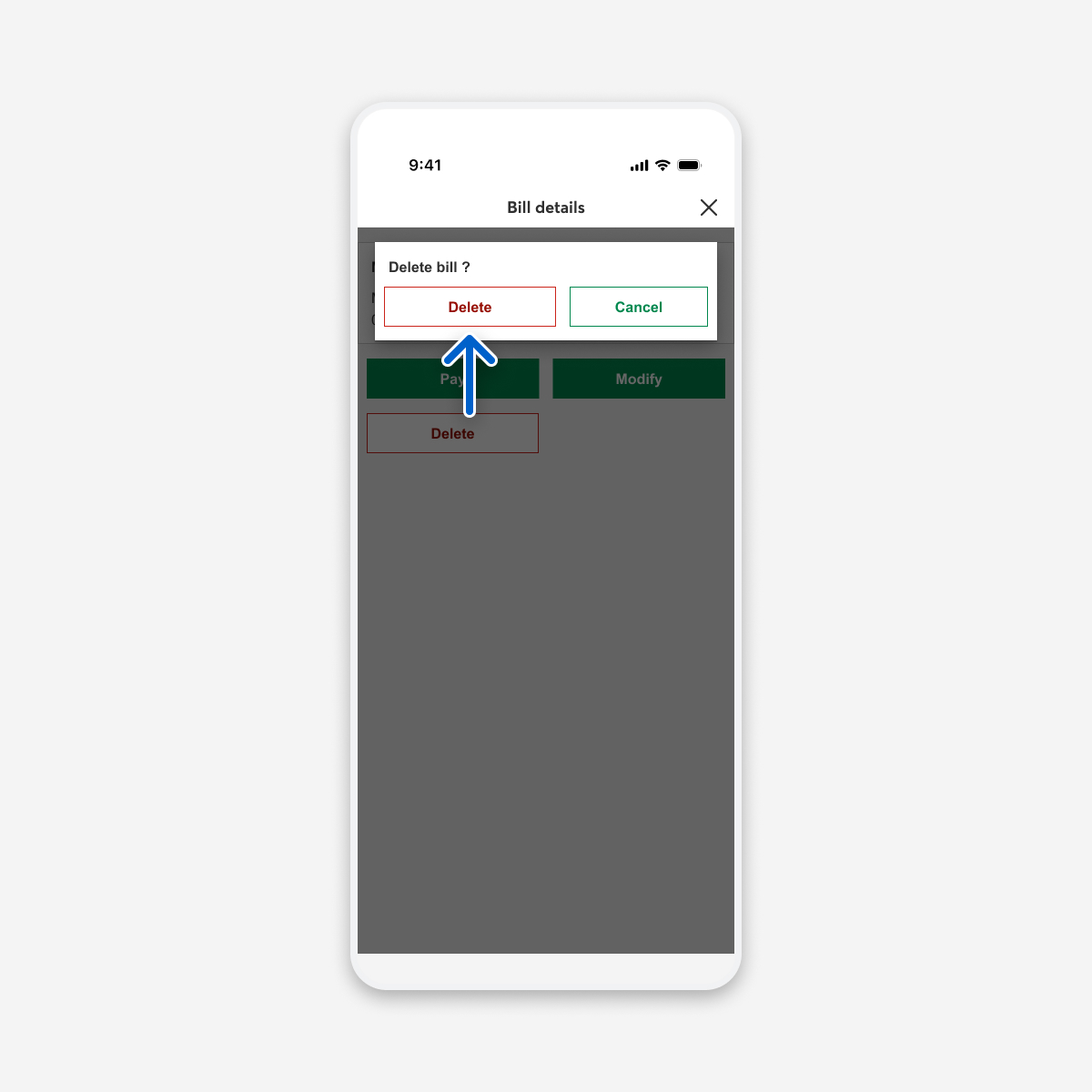 In the Modify or delete a bill tab, select the bill you want to delete, then select the Delete button.