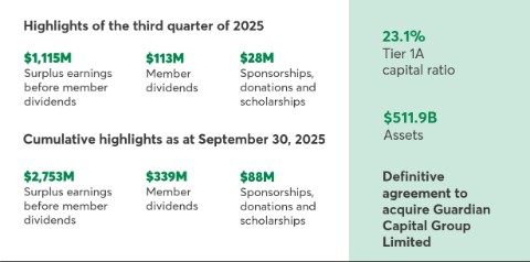 - Topic: Press releases Desjardins reports results for the third quarter of 2025 and announces a provision for member dividends of $113 million November 12, 2025