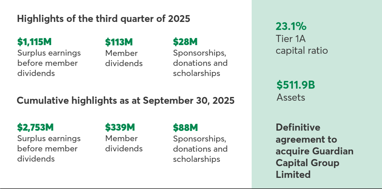 Desjardins reports results for the third quarter of 2025 and announces a provision for member dividends of $113 million