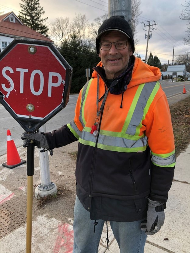 For Carl Wright, community is exactly why he took a crossing guard job at Hillsdale Elementary school in Hillsdale, Ontario. He loves putting a smile on kids' faces and having a positive impact in their day. He believes in the adage that "every kid is one caring adult away from a success story." A veteran of safety councils from his previous career, Carl also takes the time to study traffic reports and uses a 2-whistle system that goes "above and beyond." The more personal the interaction he has with drivers, the better their attitudes and behaviour. His letters to several trucking companies thanking drivers for slowing down has paid real dividends, as they continue to be respectful and safe. "The regulars are great. There's a lot of respect from a lot of drivers out there."