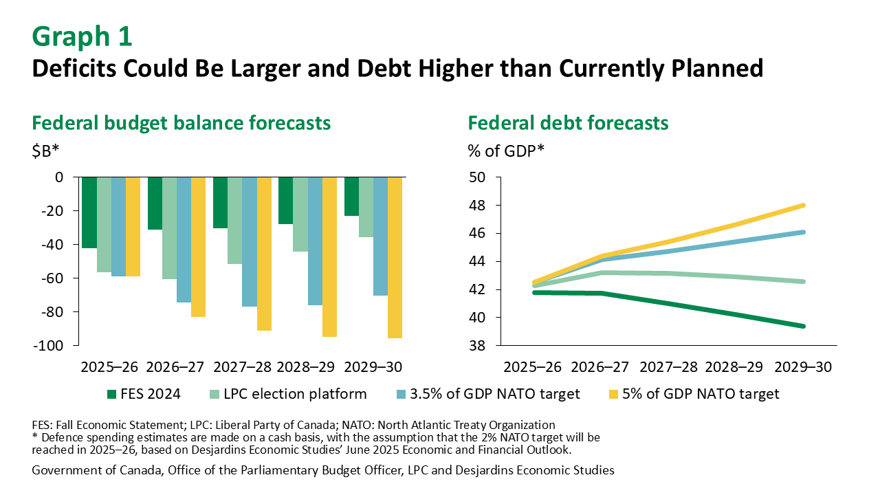 - The federal government recently announced it will reach the North Atlantic Treaty Organization’s current 2% of GDP target for defence expenditures by the end of this fiscal year.