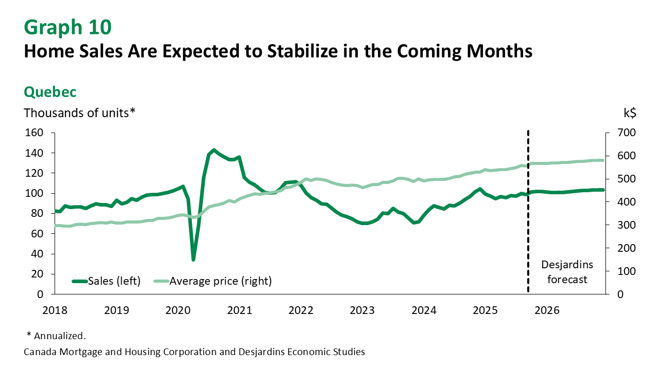 Activity has moderated in recent months, suggesting that uncertainty is finally starting to affect the resale market. Limited supply and affordability challenges are also contributing to this slowdown, which should persist in the coming months (graph 10)—especially now that mortgage rate cuts are no longer boosting demand.