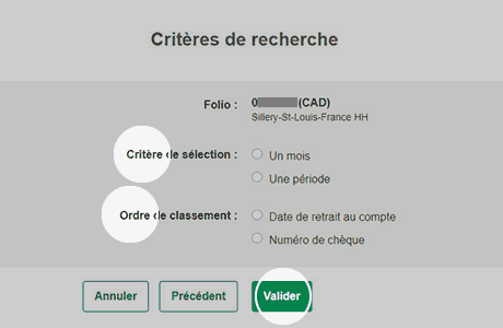 4. Sélectionnez la période et l’ordre de classement des chèques et validez.