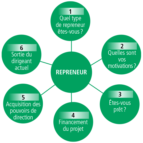 Reprendre une entreprise demande une réflexion sur vos motivations et vos besoins, ainsi qu’une analyse précise de l'entreprise que vous prévoyez reprendre. Existe-t-il une entreprise concurrente? De quel montant avez-vous besoin pour votre fonds de roulement? Quel type de financement pouvez-vous envisager?
