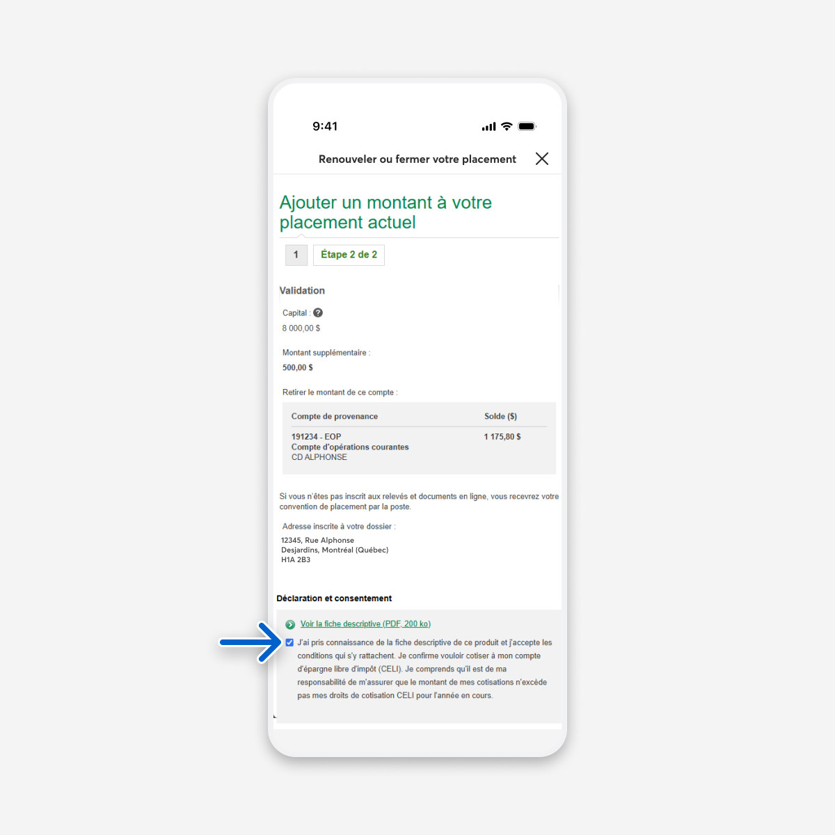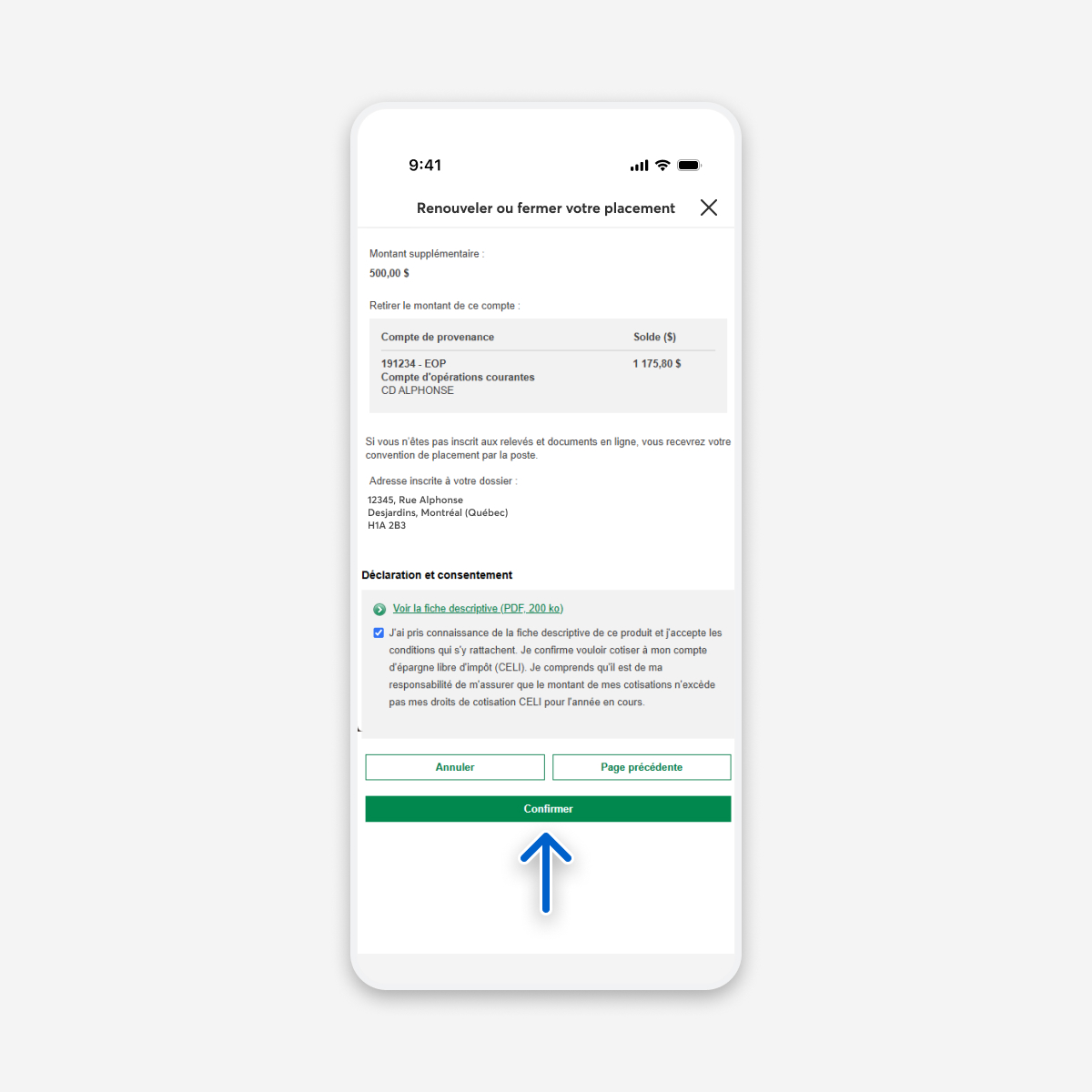Renouvelez votre placement garanti lié aux marchés dans AccèsD à partir de votre appareil mobile ou de votre ordinateur.