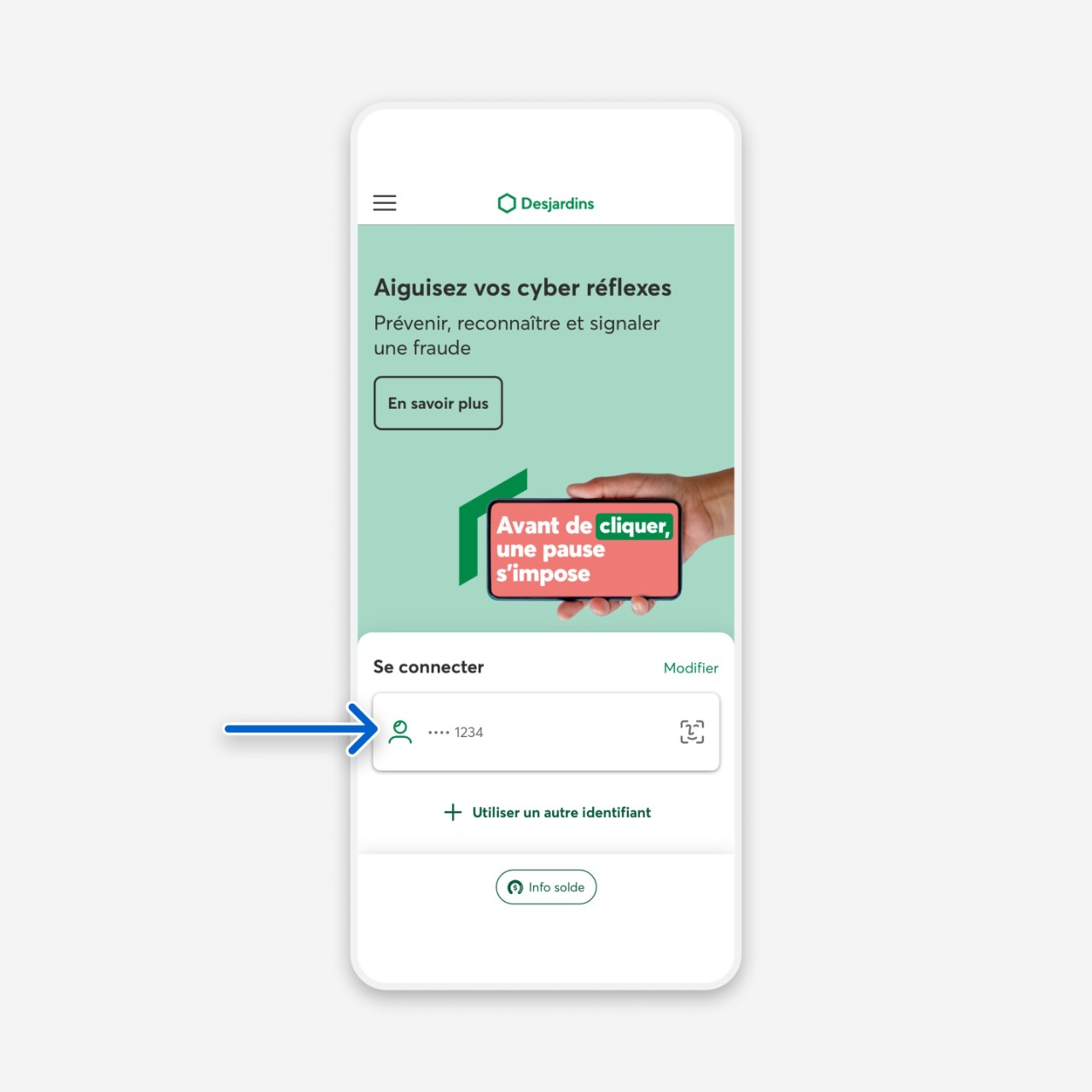 L’application Services mobiles Desjardins s’ouvre automatiquement si vous l’avez sur votre téléphone intelligent ou tablette. Connectez-vous.