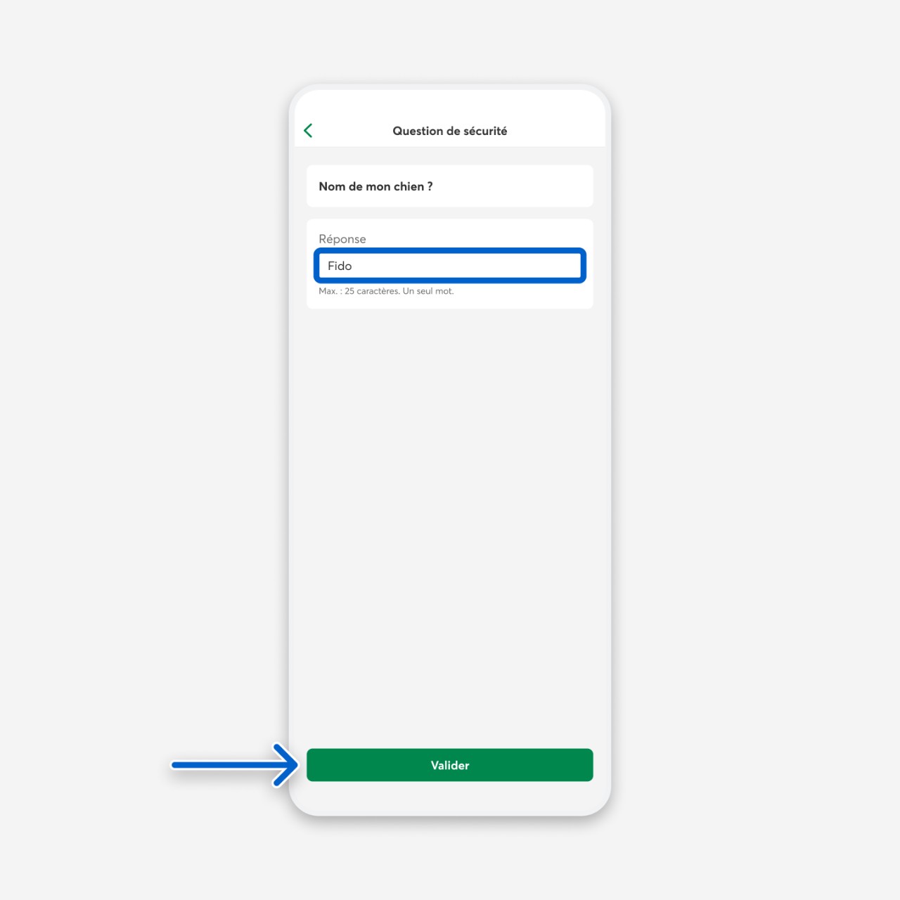 Entrez la réponse à la question de sécurité et sélectionnez le bouton Valider.