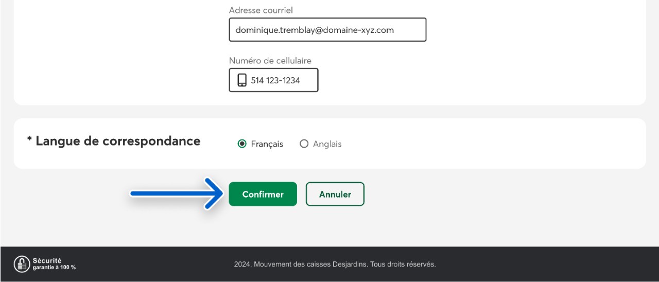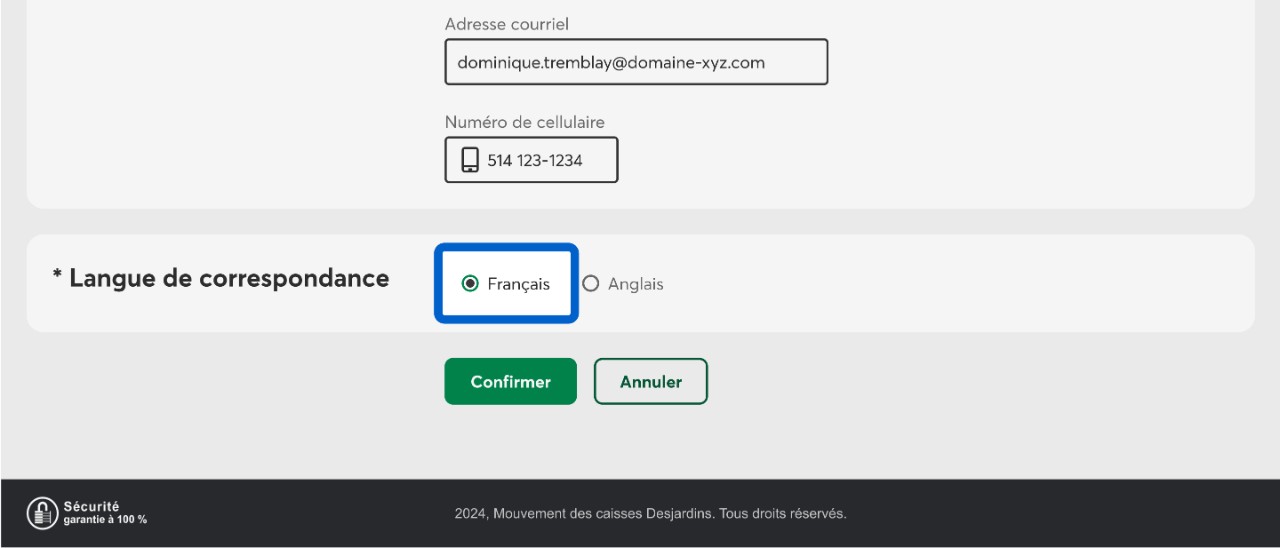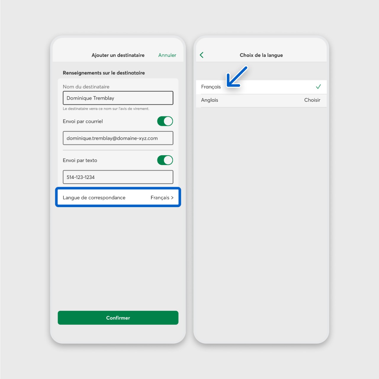 1 .Choisissez Français ou Anglais comme langue de correspondance.