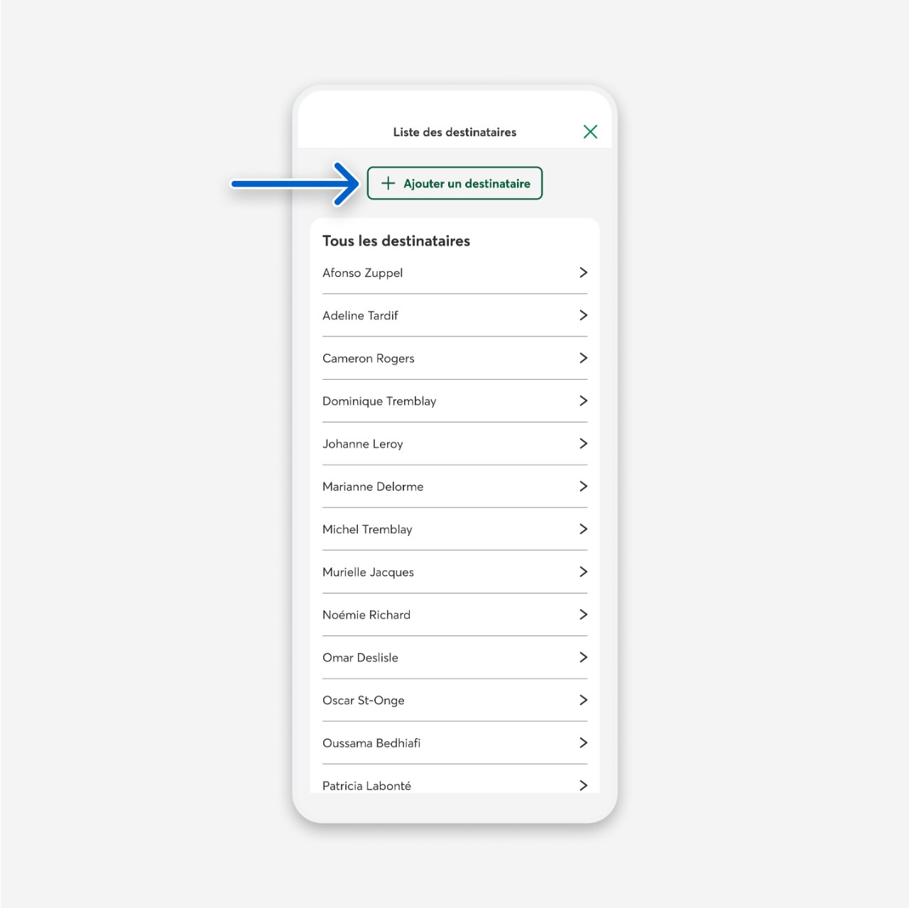Comment ajouter des destinataires pour faire un Virement Interac?