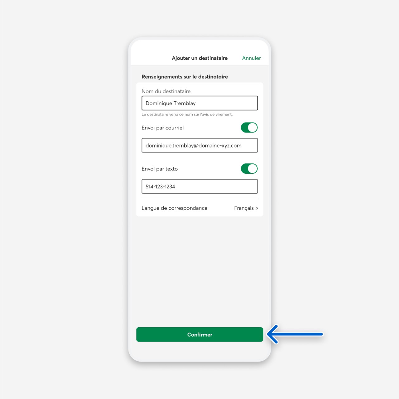Sélectionnez le bouton Confirmer pour terminer l’ajout de votre destinataire.