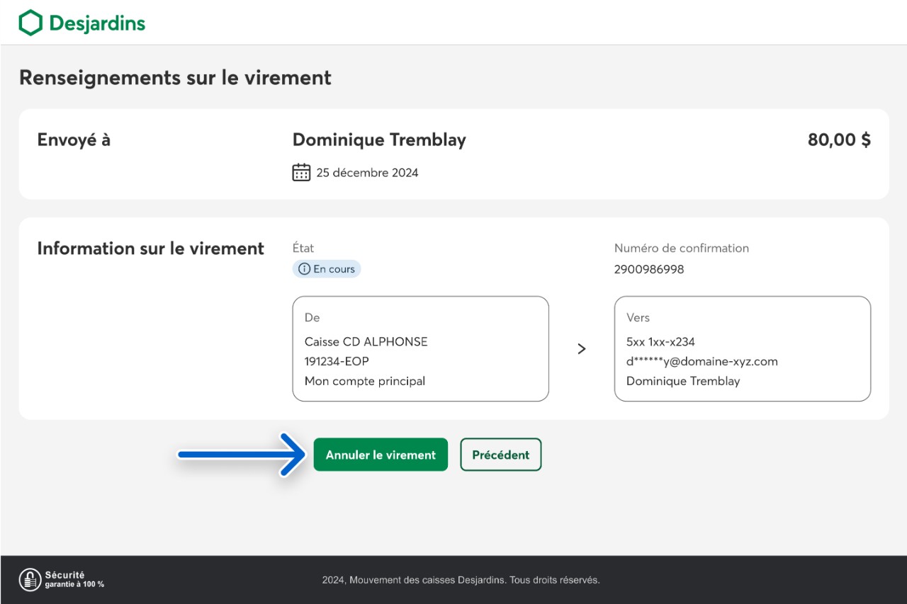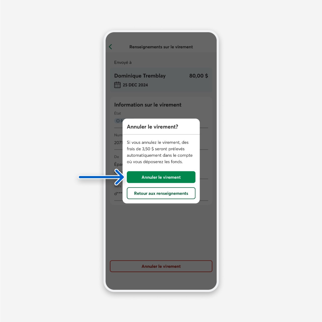 Sélectionnez le bouton Annuler le virement dans la page de renseignements.