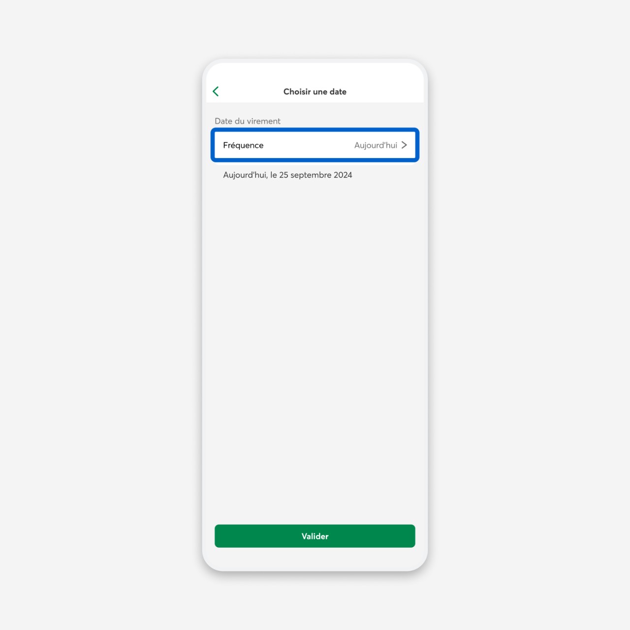 Dans la page Choisir une date, sélectionnez le bouton Fréquence.