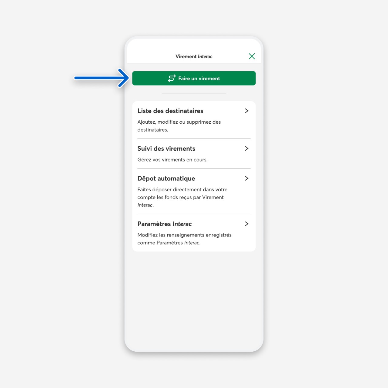 Dans la page Virement Interac, sélectionnez le bouton Faire un virement.