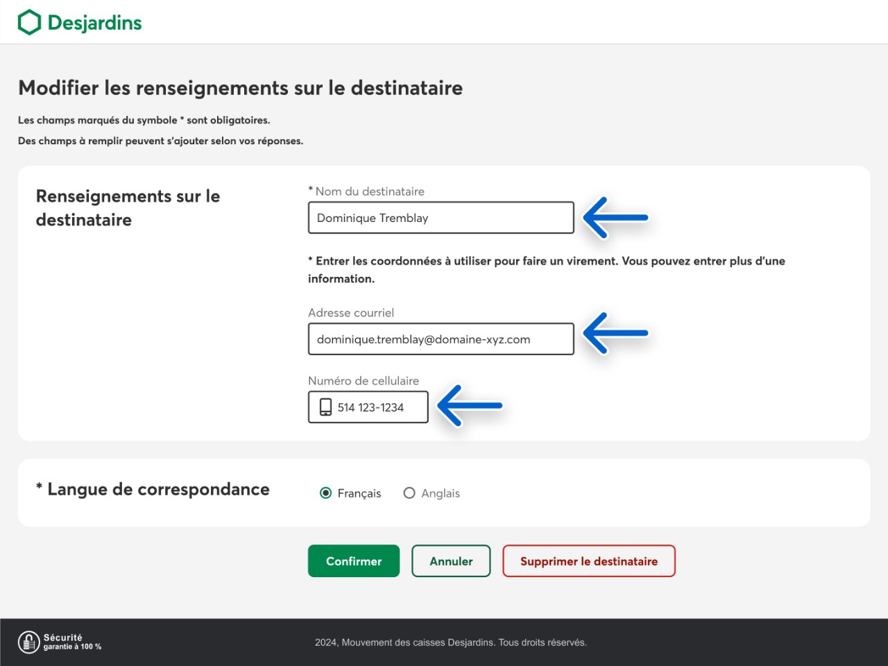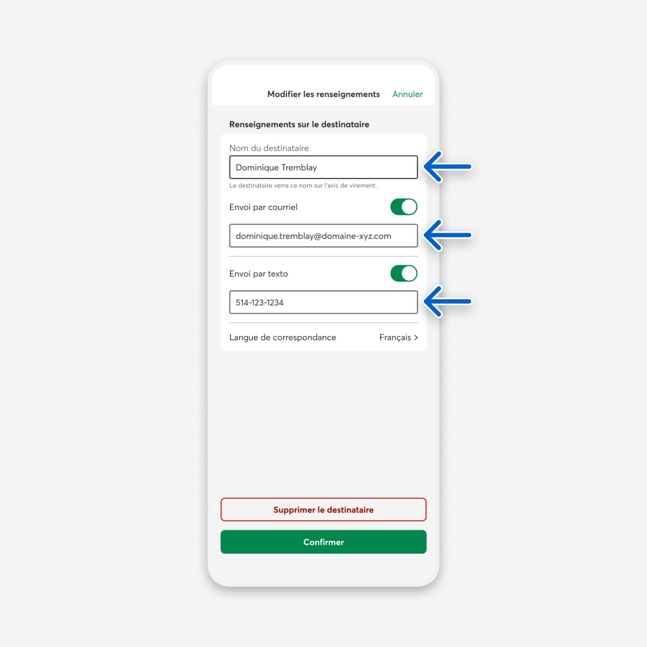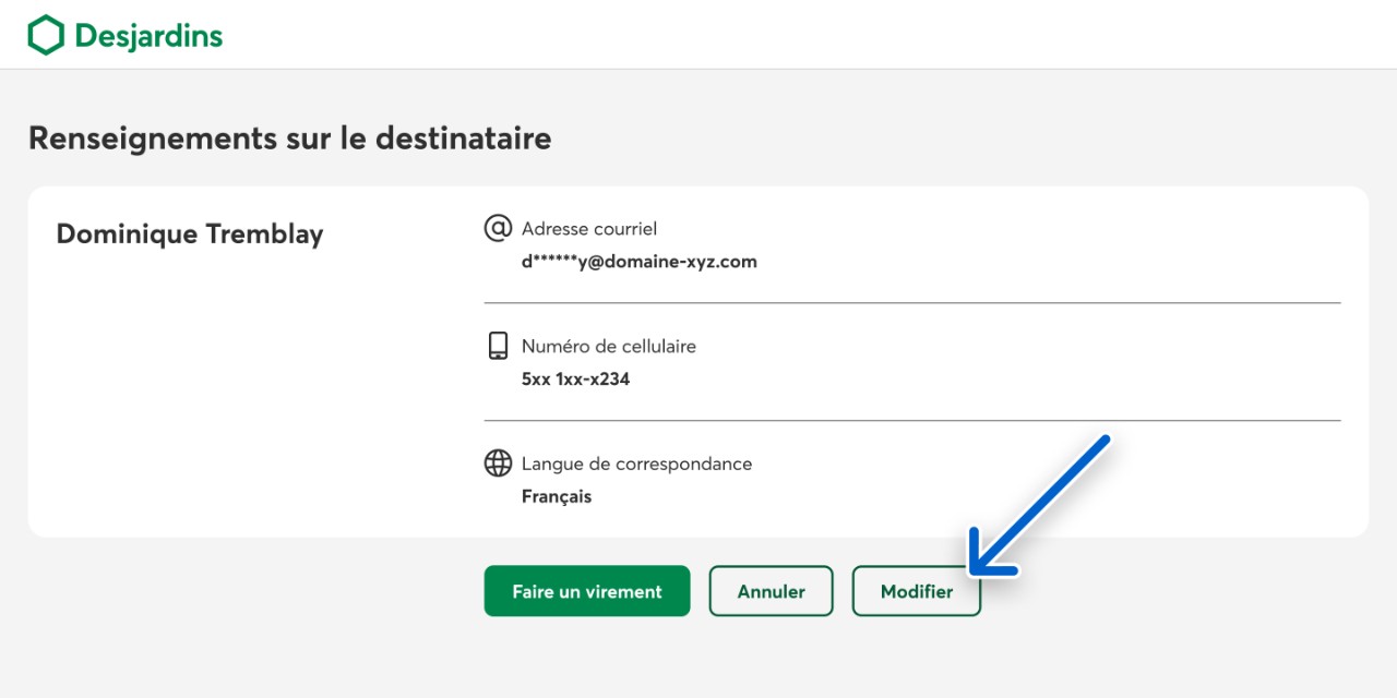 Comment modifier les coordonnées des destinataires de Virement Interac?