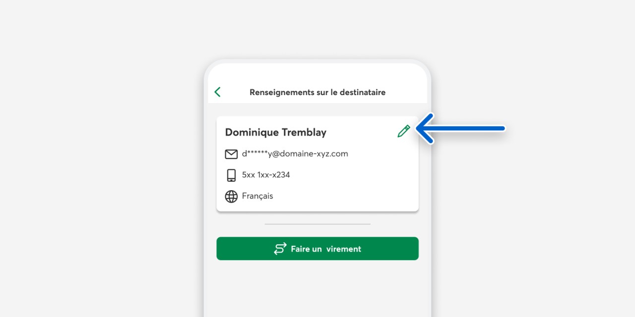 Modifiez les renseignements de vos destinataires de Virement InteracMD dans AccèsD, à partir de votre appareil mobile ou de votre ordinateur.
