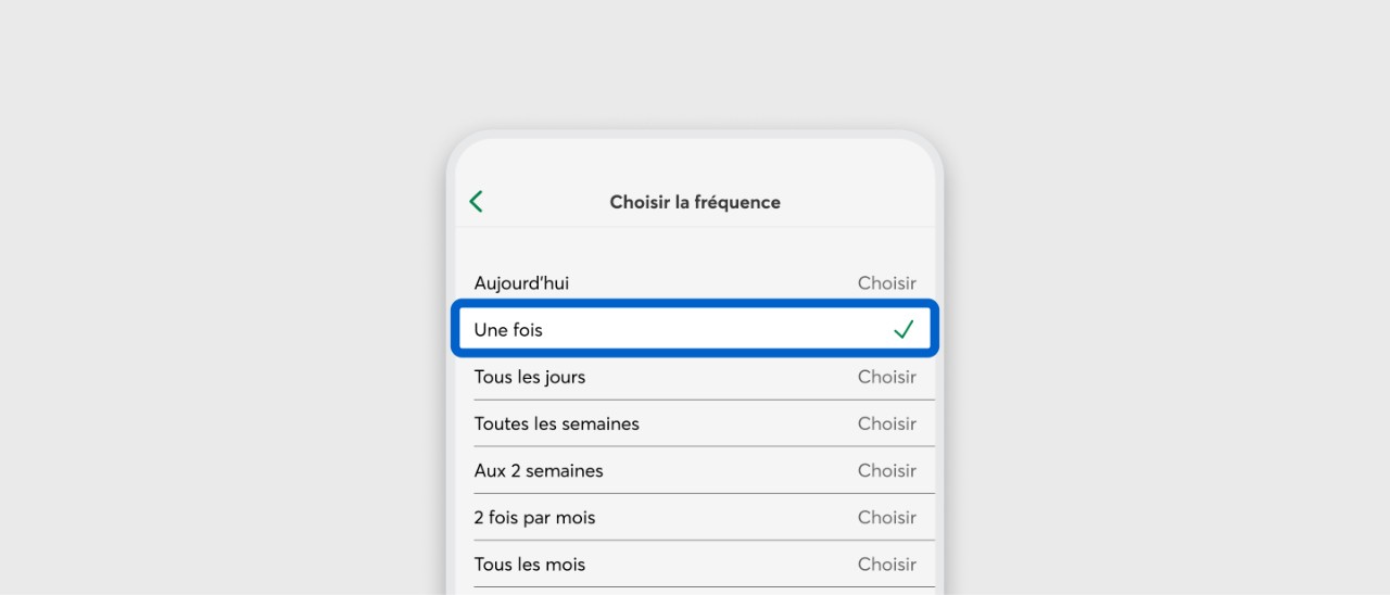 Quand vous êtes à l’étape de choisir une date pour faire votre Virement Interac, sélectionnez Une fois dans la liste déroulante.