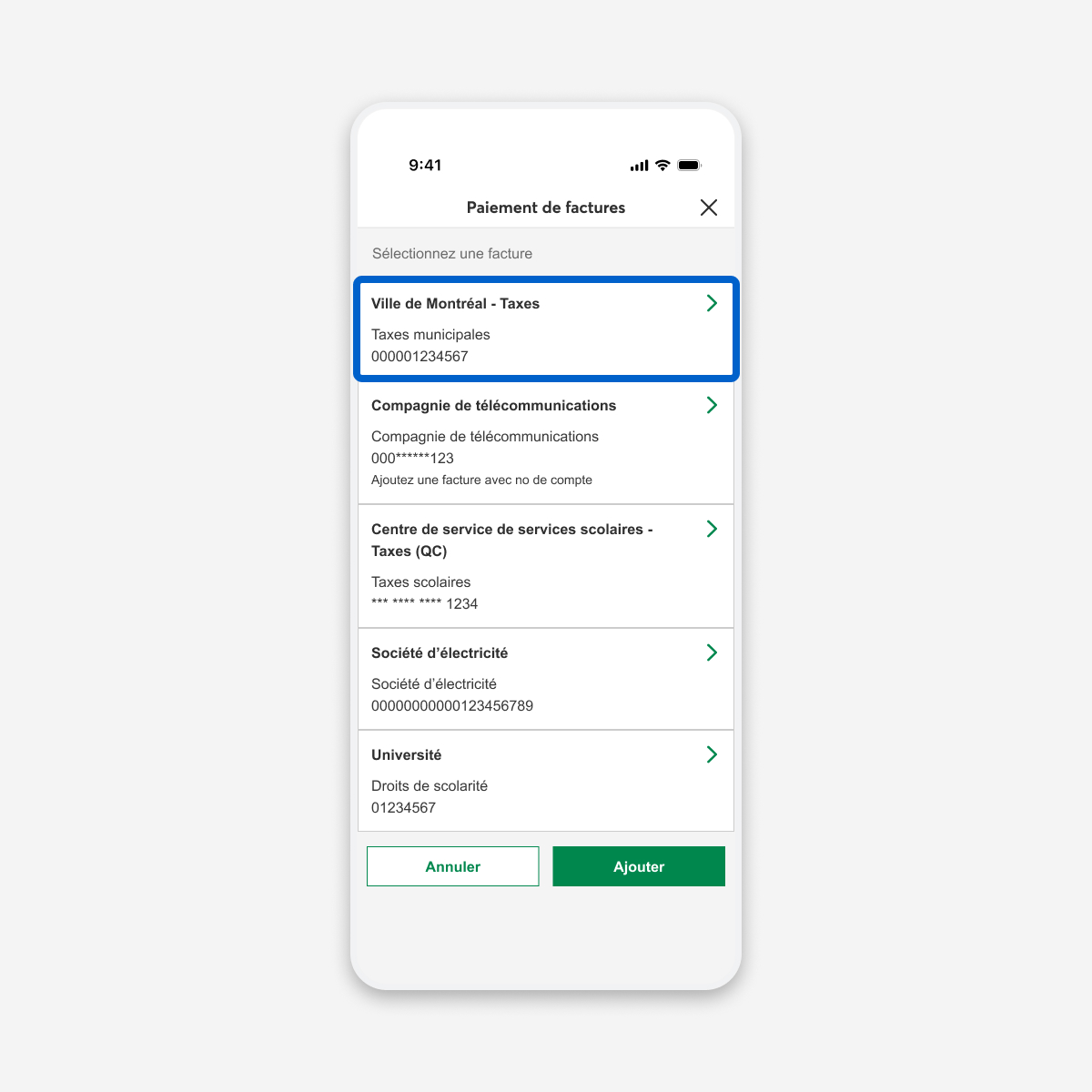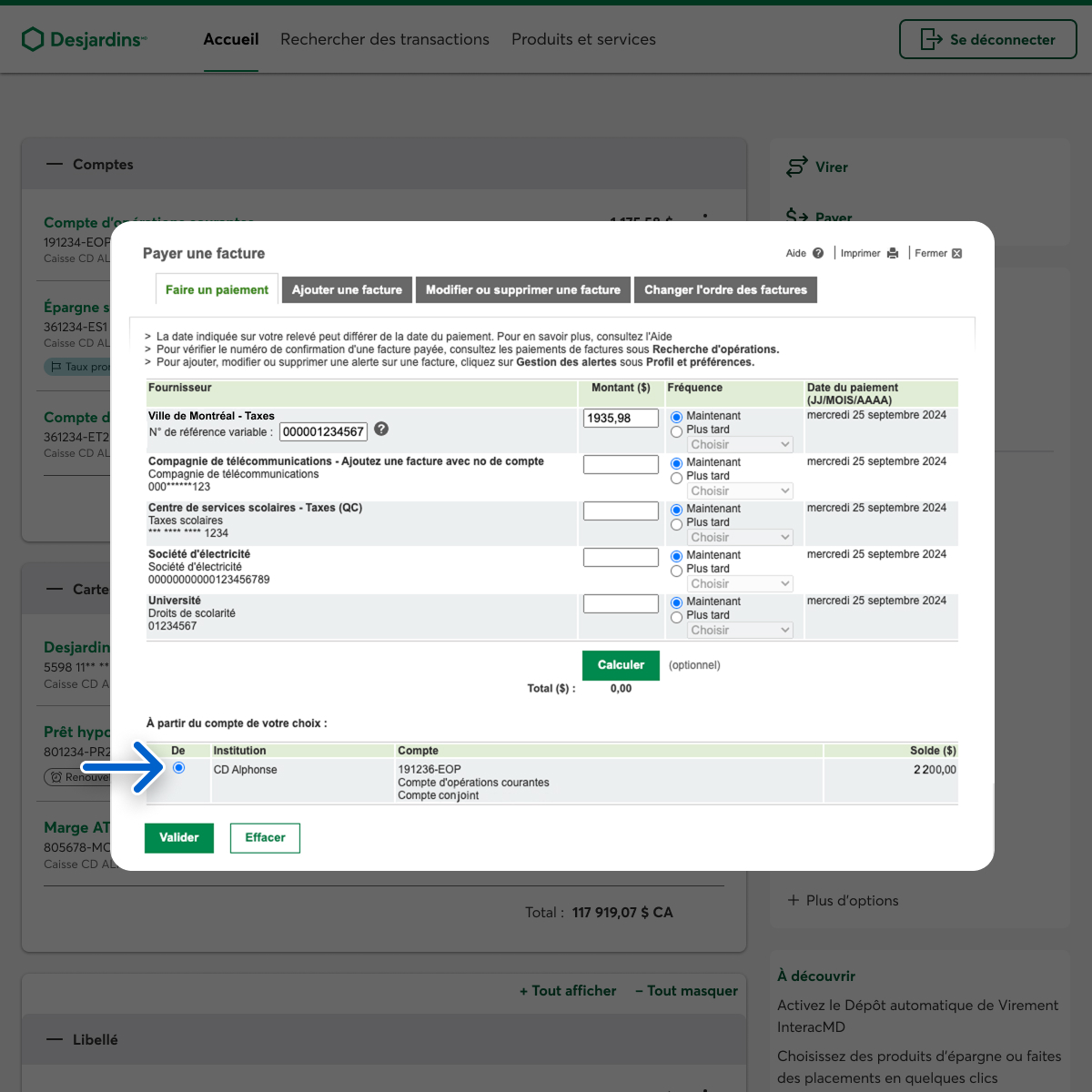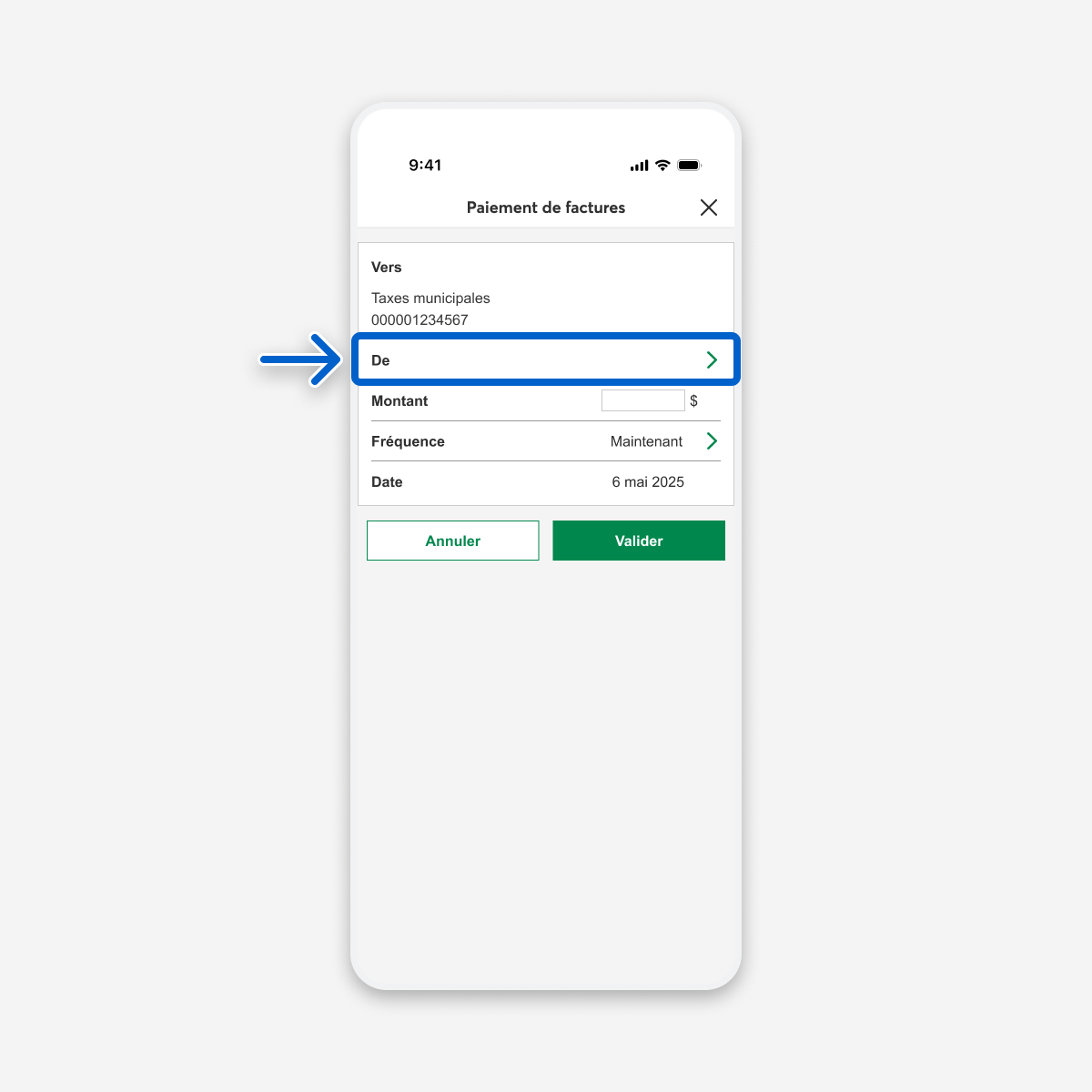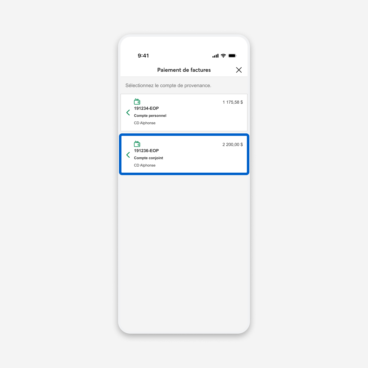 Sélectionnez le compte à partir duquel vous voulez faire votre paiement.