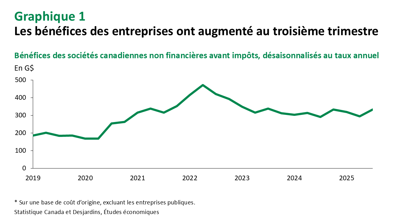 Le portrait de la rentabilité au troisième trimestre confirme que plusieurs secteurs de l’économie canadienne continuent de faire preuve de résilience malgré les politiques commerciales perturbatrices des États‑Unis (comme nous l’avons récemment observé Lien externe au site.). Les entreprises ont clairement pris des mesures pour s’adapter à cet environnement en mutation. Mais l’évolution future dépendra grandement de leur capacité à investir avec plus de confiance au cours des prochains trimestres.