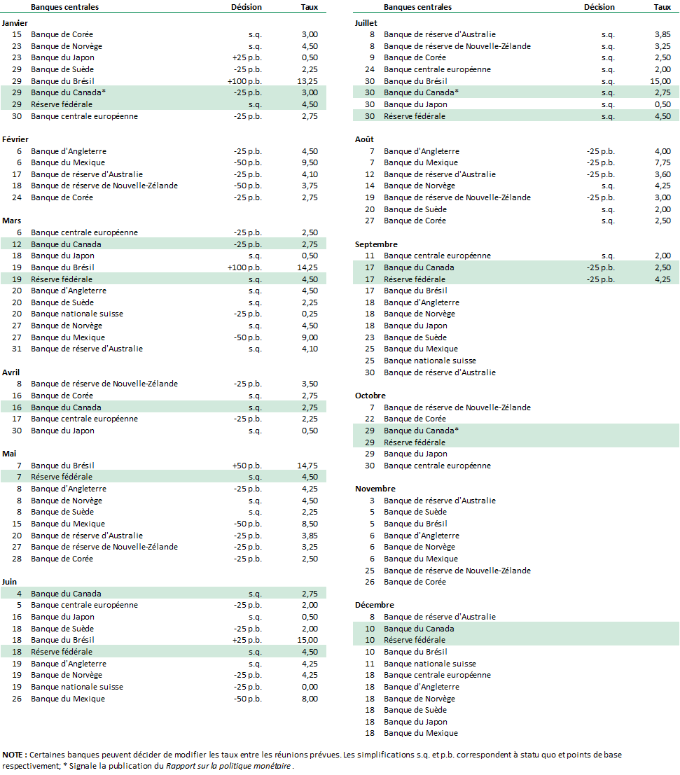 Calendrier 2025 des réunions des banques centrales