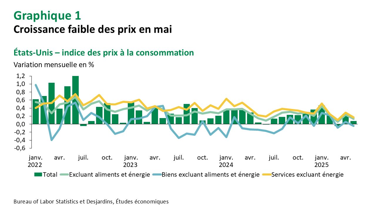 Les variations mensuelles de prix demeurent relativement modestes, bien que les taux d’inflation annuelle restent encore au-dessus de la cible de 2 % de la Réserve fédérale (Fed). Il faut maintenant attendre de voir si la politique commerciale amènera davantage de pressions haussières. Les dirigeants de la Fed resteront probablement aussi en mode d’attente jusqu’à la fin de l’été.
