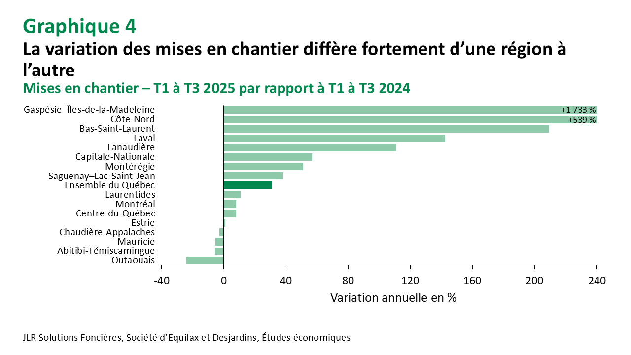 Les transactions et les prix de vente progressent dans l’ensemble des régions du Québec. Les stocks se redressent graduellement dans la plupart des endroits, mais les hausses de prix sont plus marquées dans les régions où ce rééquilibrage tarde, comme en Mauricie, dans la Capitale‑Nationale ou au Saguenay–Lac‑Saint‑Jean (graphique 9).