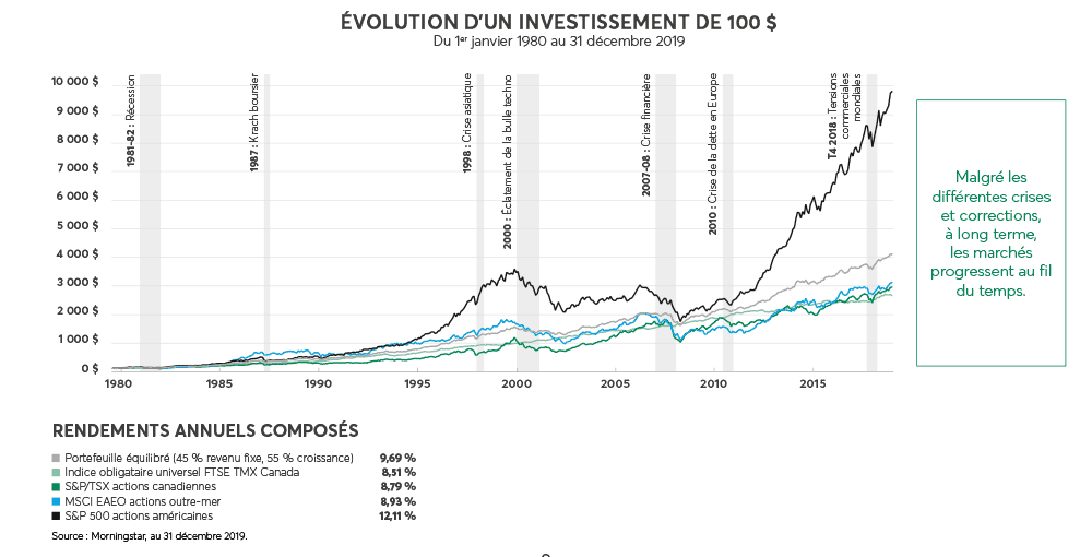 C'est grâce à vos investissements que vous serez en mesure d'atteindre la liberté que vous recherchez. Ils symbolisent le cumul de bien des rêves, le résultat d'efforts soutenus et la clé d'un meilleur avenir que vous souhaitez pour vous et vos proches. Ils vous aident à réaliser librement les projets qui vous tiennent à cœur. Voici quelques conseils qui sauront vous aider à garder confiance lorsque les marchés sont plus volatils qu'à l'habitude.