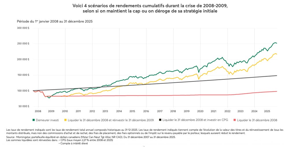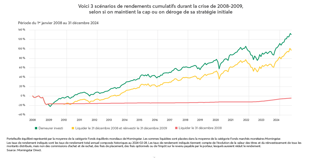 C'est grâce à vos investissements que vous serez en mesure d'atteindre la liberté que vous recherchez. Ils symbolisent le cumul de bien des rêves, le résultat d'efforts soutenus et la clé d'un meilleur avenir que vous souhaitez pour vous et vos proches. Ils vous aident à réaliser librement les projets qui vous tiennent à cœur. Voici quelques conseils qui sauront vous aider à garder confiance lorsque les marchés sont plus volatils qu'à l'habitude.