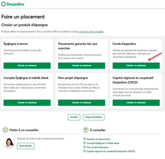 4. Choisir un produit d’épargne (Fonds Desjardins)
