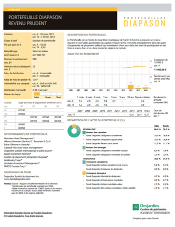 En raison de changements apportés à la gamme des Fonds Desjardins, il n’est plus possible d’acquérir les Portefeuilles Diapason. Ceux-ci sont offerts en réinvestissement aux personnes qui détiennent déjà un portefeuille.